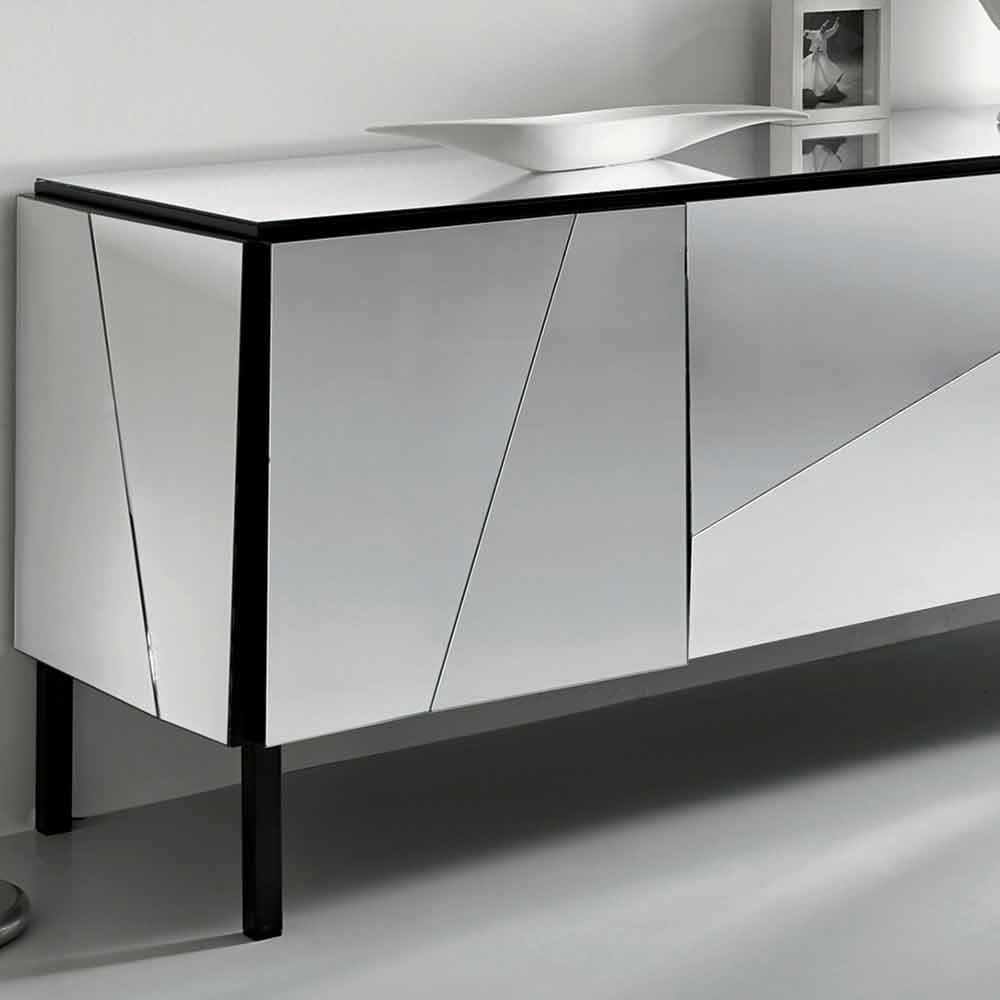 Realizat cu o structură și picioare din lemn lăcuit negru mat, efectul oglinzii este total datorită placării din sticlă cu oglinzi concave și convexe care o face elegantă și sofisticată, conferind o notă de măiestrie și ospitalitate mediului.