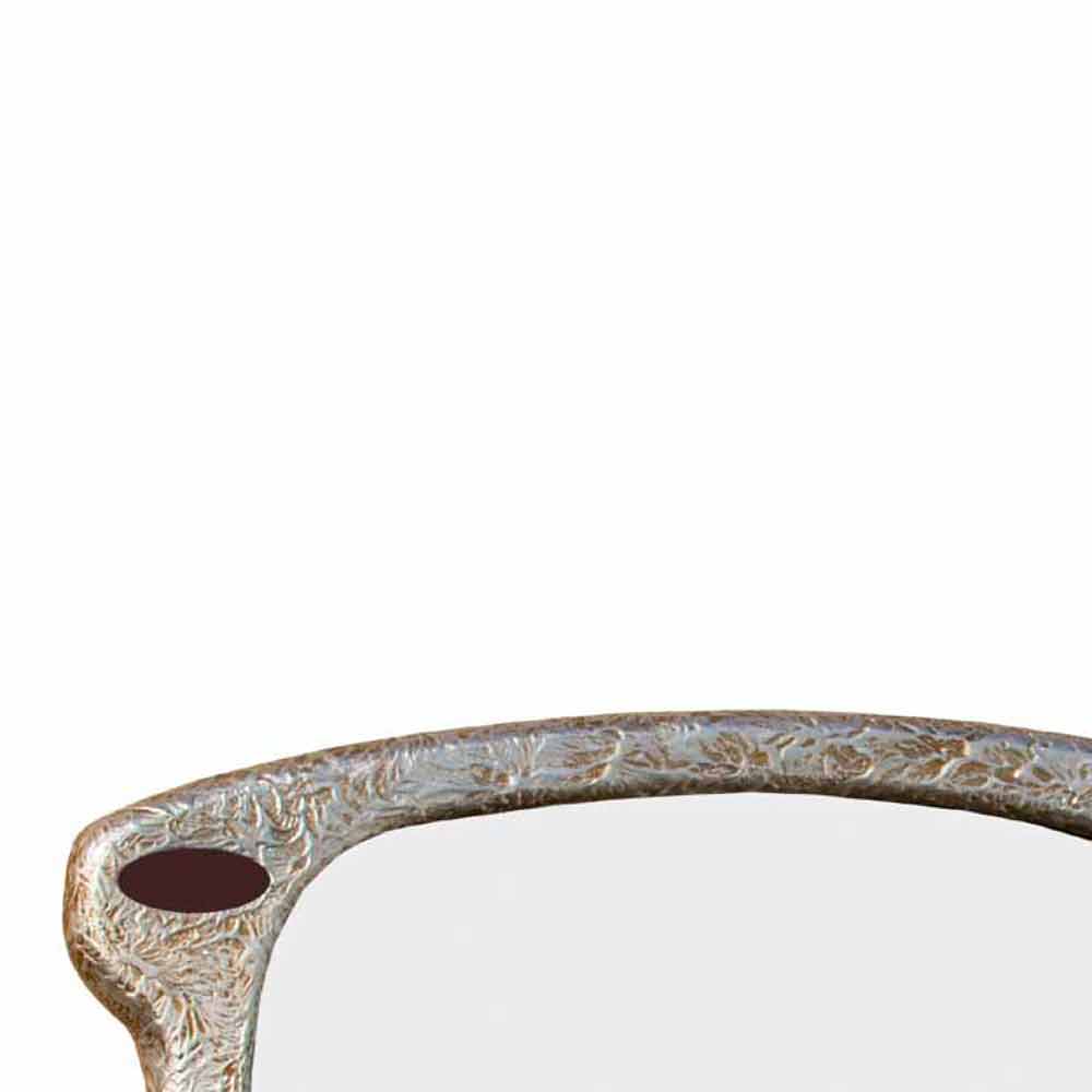Oglindă caracterizată de stil și eleganță excelente. Fabricat din MDF, un material foarte rezistent și nealterabil în timp, cu structură în formă și decorat manual cu frunze de argint pe materiale texturate, plăcut la atingere și plăcut de văzut.