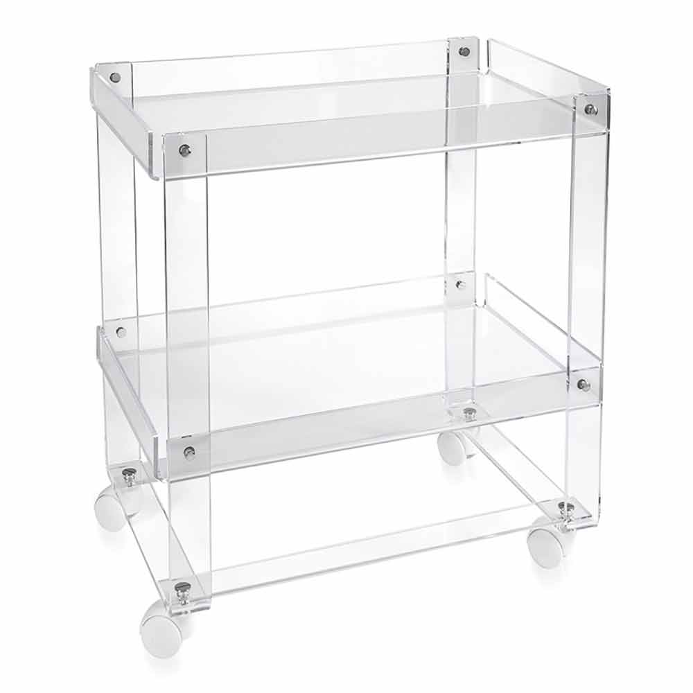 Cărucior alimentar practic și versatil, confecționat cu plexiglas 100% din polimer virgin, compus din 2 rafturi, ceea ce îl face foarte util ca cărucior auxiliar în spațiul intern.