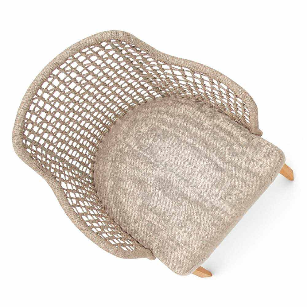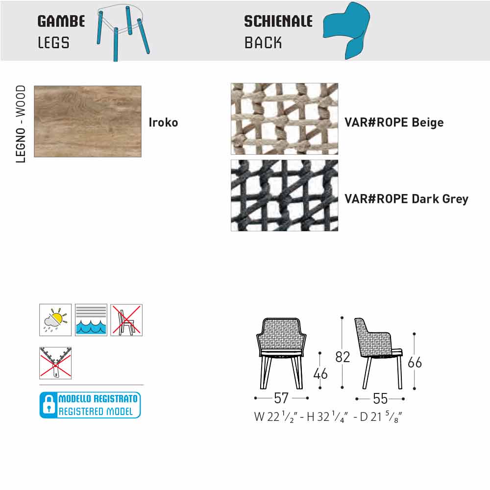 De asemenea, este dotat cu picioare de lemn iroko solide și un scaun tapițat în țesătură cu structură de scaun din polipropilenă.