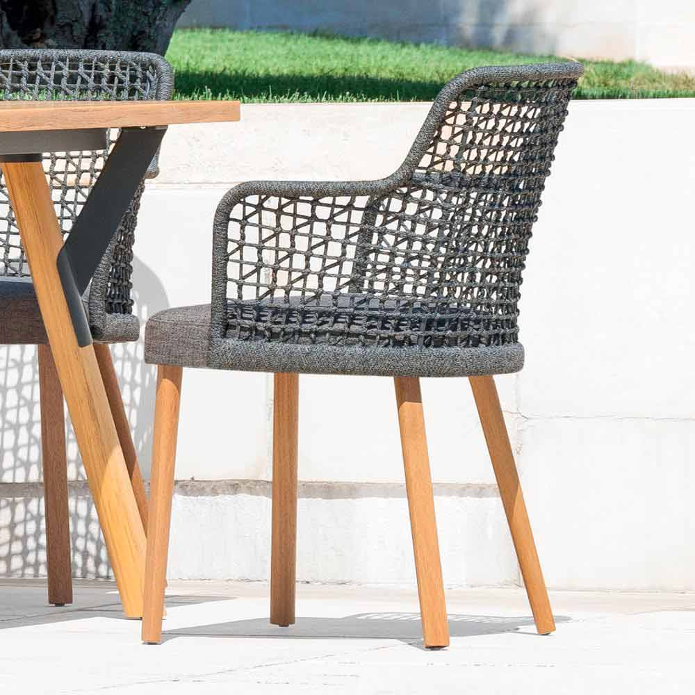 Emma este un fotoliu de grădină caracterizat printr-o structură din fibră sintetică realizată manual, cu un cadru de aluminiu acoperit cu pulbere de culoare gri sau de culoare închisă.