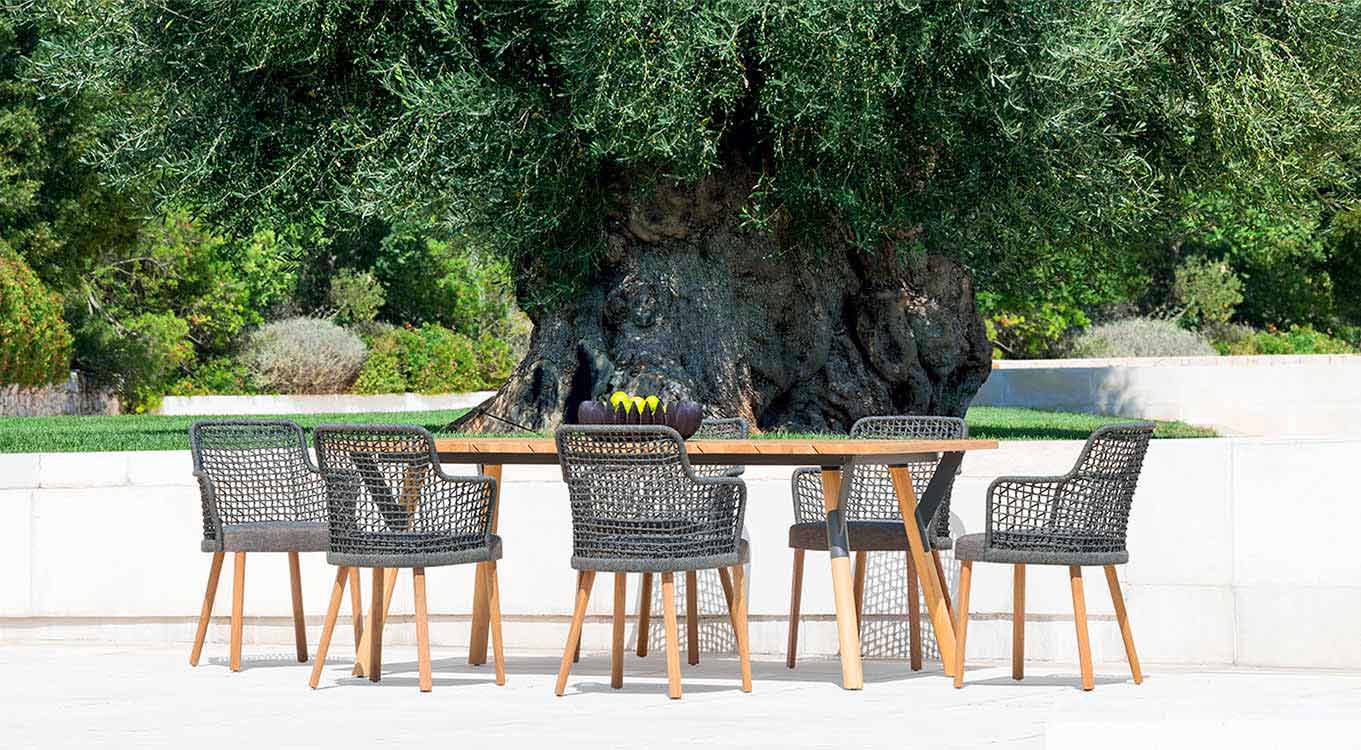 Întreținere: Colecția acceptă lumina soarelui și ploaia. Vă recomandăm întreținerea regulată și o atenție deosebită protecției obiectelor în caz de condiții meteorologice nefavorabile (gheață, grindină, schimbări de temperatură, umiditate, persistență, căldură aprinsă sau frig extrem). Durata și integritatea acestor elemente depind de îngrijirea cu care sunt menținute. Pentru produsele din aluminiu și oțel, deși protejate de tratamente și finisaje adecvate pentru utilizare în exterior, este esențial să se prevină stagnarea apei în interiorul produsului în sine. De fapt, toate articolele au găuri tehnice necesare pentru aplicarea tratamentelor și a finisajelor de protecție. Introducerea apei în aceste găuri și stagnarea acesteia pot provoca rugină în interiorul conductelor.