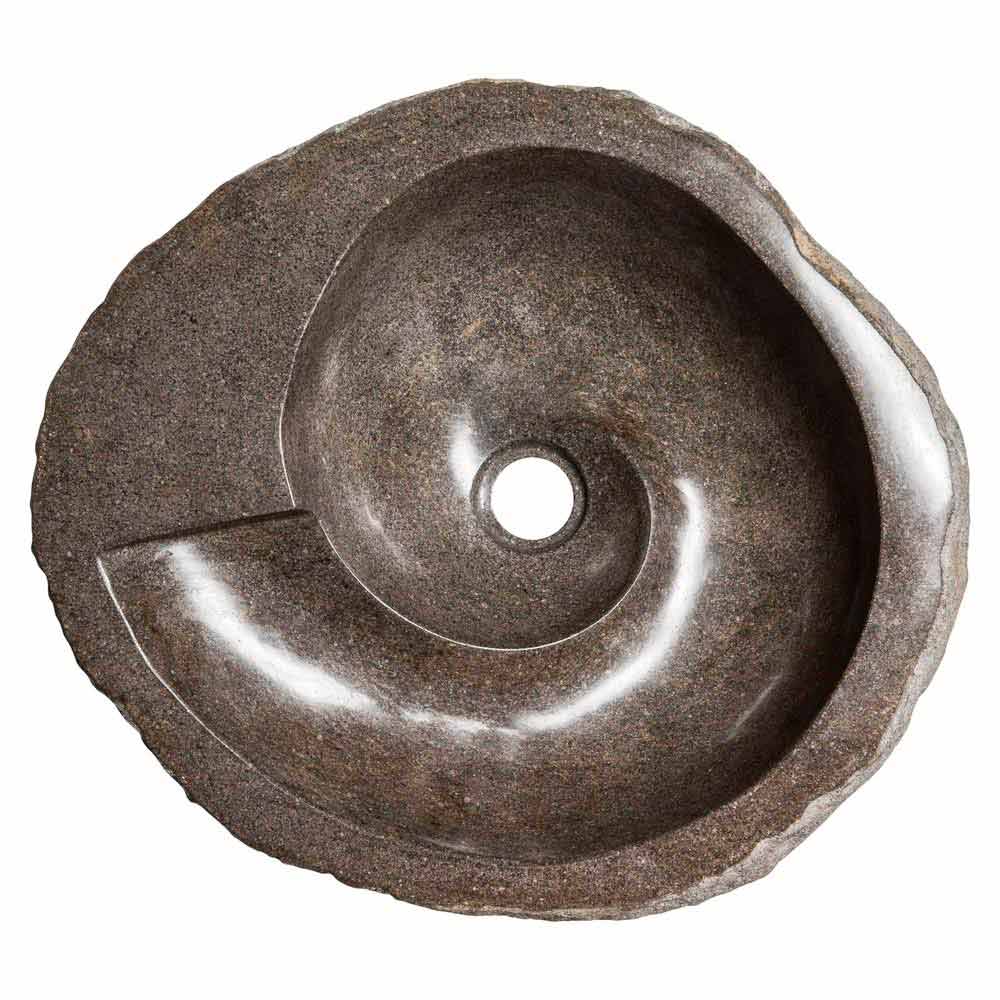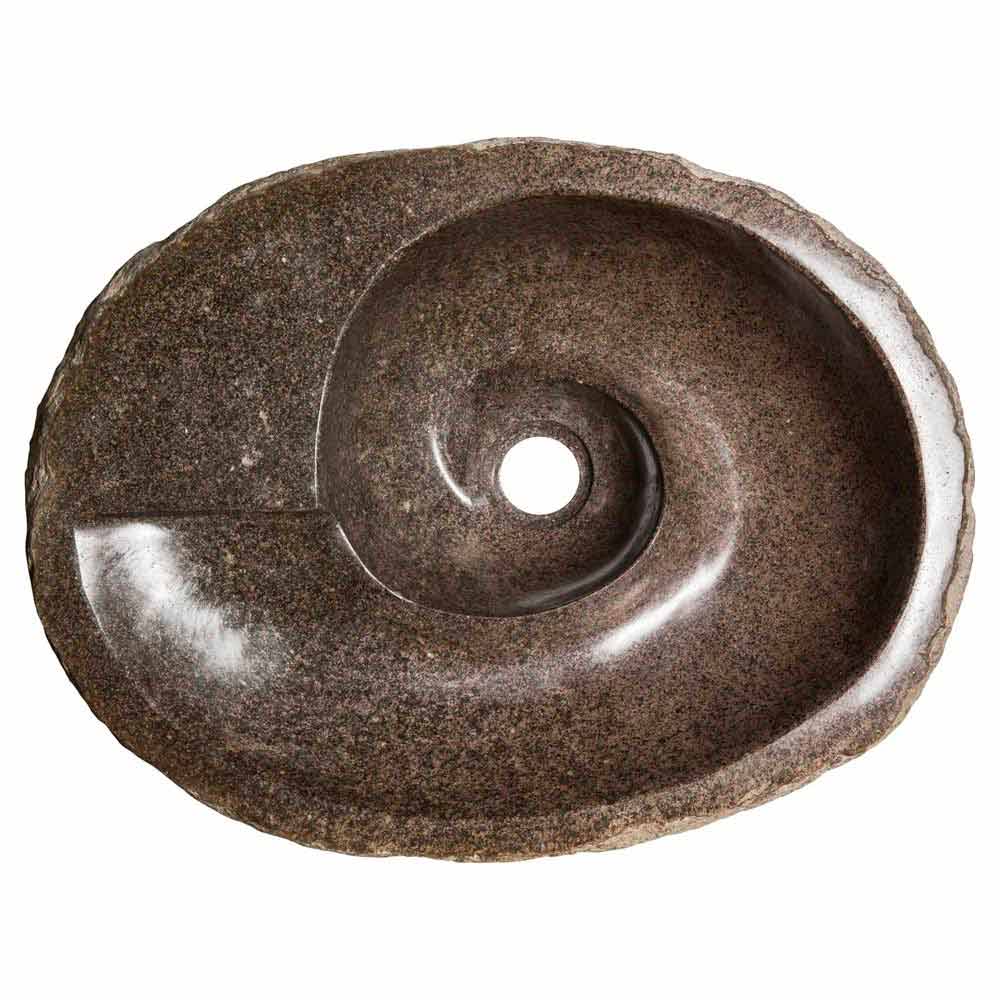 Busca este o chiuvetă circulară de blat fantastică cu o formă neregulată realizată manual în piatră de râu.