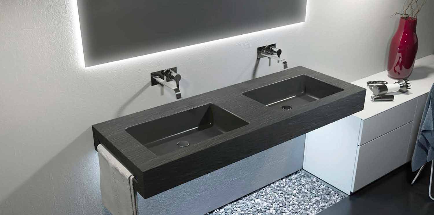 Rufina este un sistem integrat compus dintr-un material de top care găzduiește două chiuvete; particularitatea sa este că poate fi instalat pe orice tip de bază sau poate fi lăsat în versiunea suspendată.