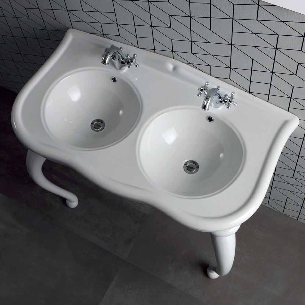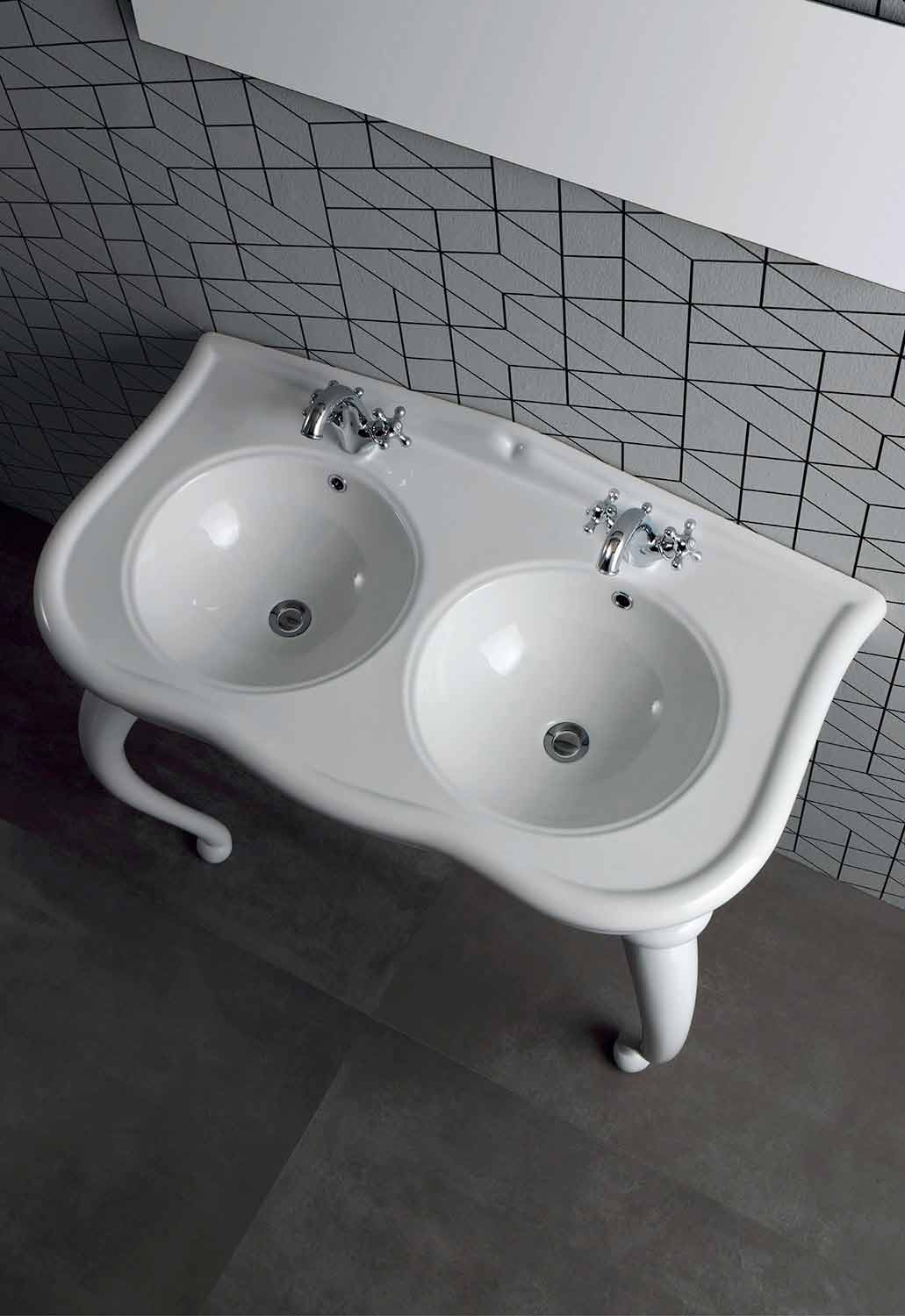 cu picioarele . Se realizează în porțelan vitros , un fel de ceramică glazută gătită la 1200 ° . Este un material rezistent la acid, căldură, umflături și zgârieturi . Este igienică , este de curățat și nu se estompează în timp.
