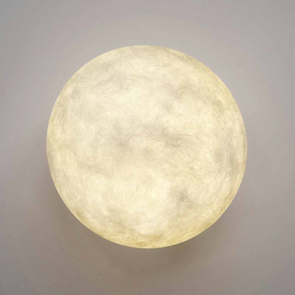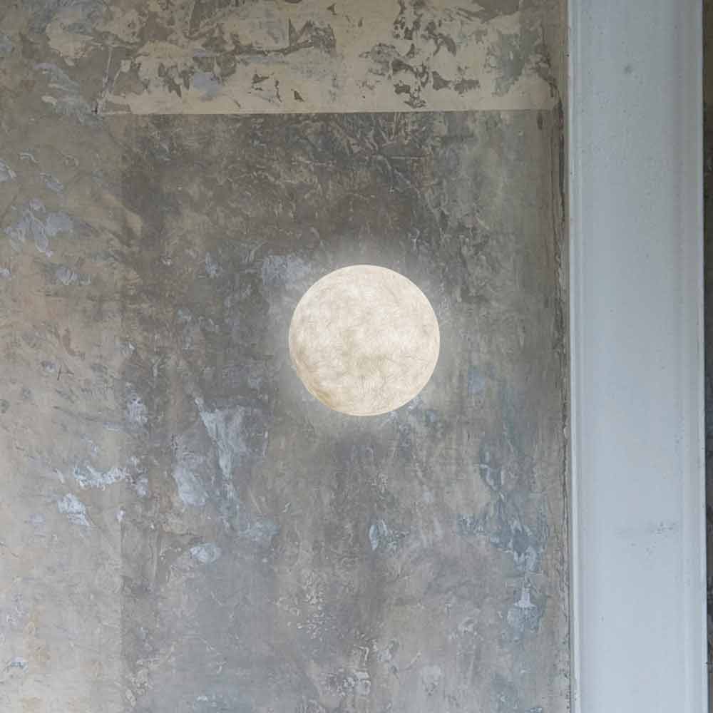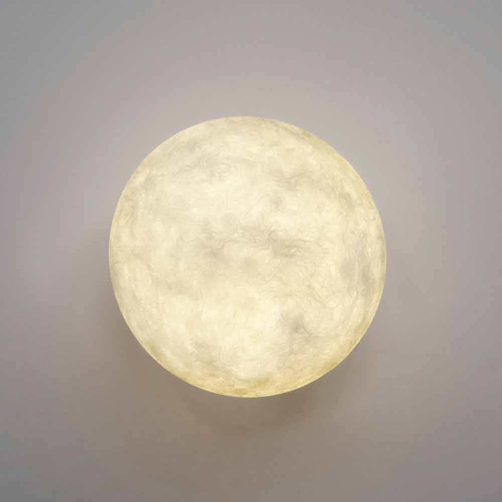 Fabricat de In-es.artdesign pentru colecția Luna din Nebulite®, un material inovator, fabricat din rășină și fibră, care dă lampei datorită venelor sale, darul de a reproduce o atmosferă lunară magică.