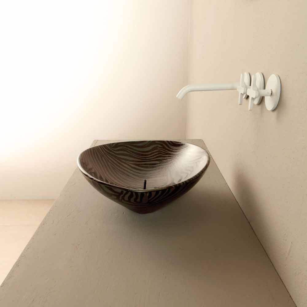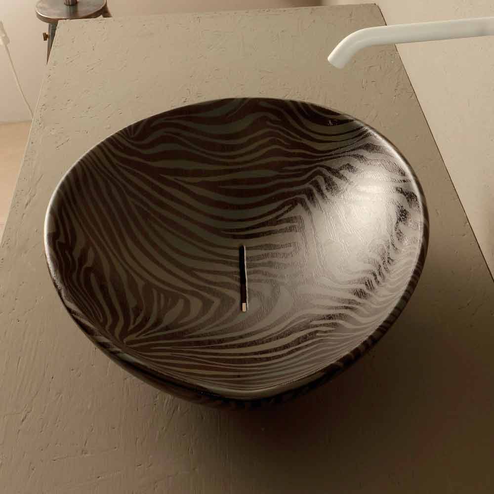 Lavoar de blat design din ceramică zebră neagră, fabricat în Italia Animals
