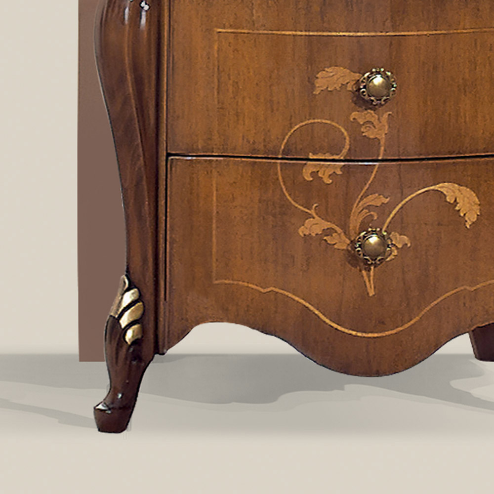 Noptiera pentru dormitor din nuc Bassano si auriu antic cu incrustatii elegante si 3 sertare practice. O completare unică și rafinată, realizată complet în Italia de meșteri pricepuți , maeștri ai artei care termină fiecare complement cu înțelepciune și gust pentru eleganță. Producția este realizată folosind materiale fine , iar lucrul este realizat manual cu cea mai mare grijă și profesionalism care distinge produsele Made in Italy .