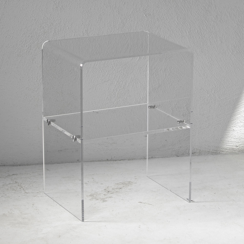 Noptiera din cristal acrilic transparent cu polita, fabricata in Italia.