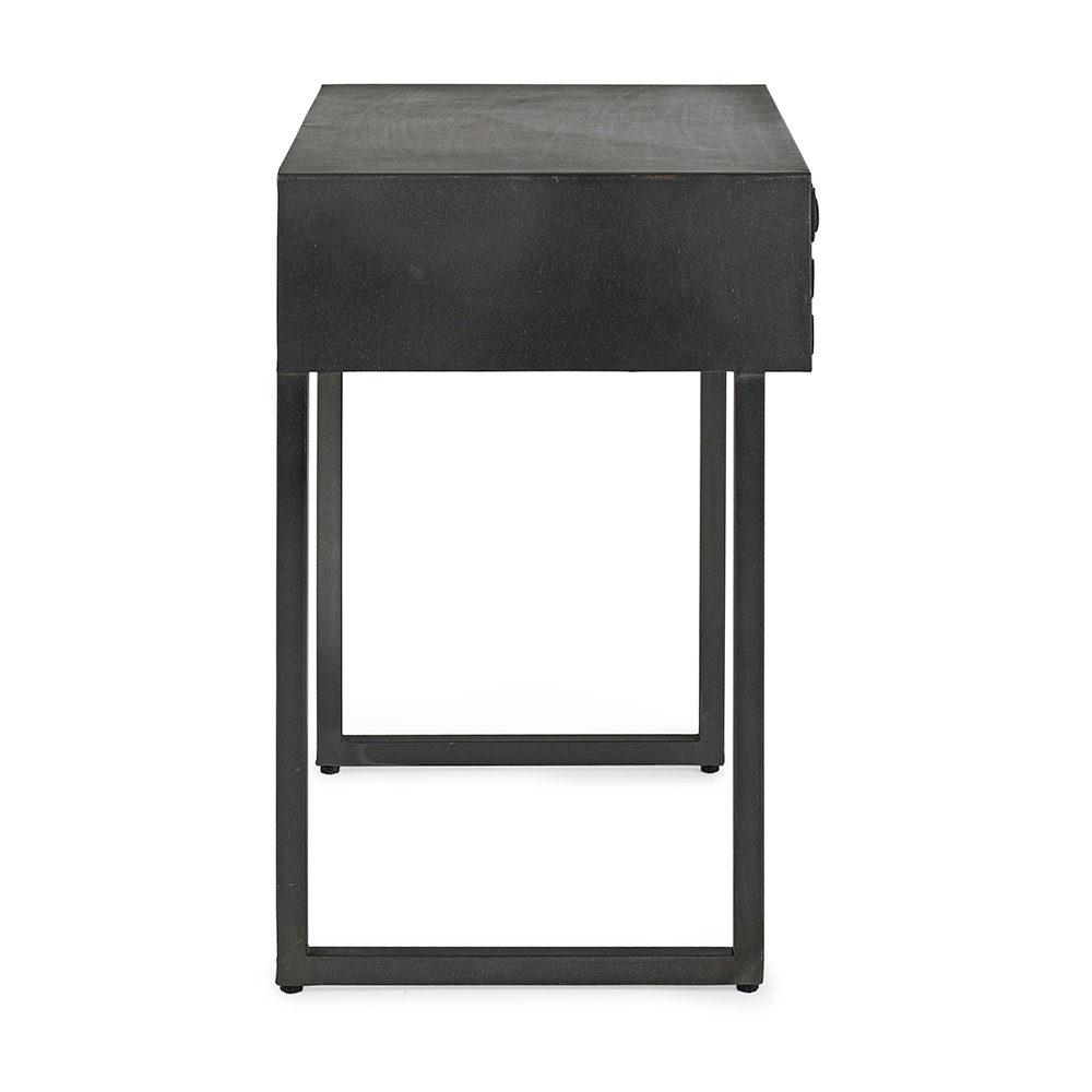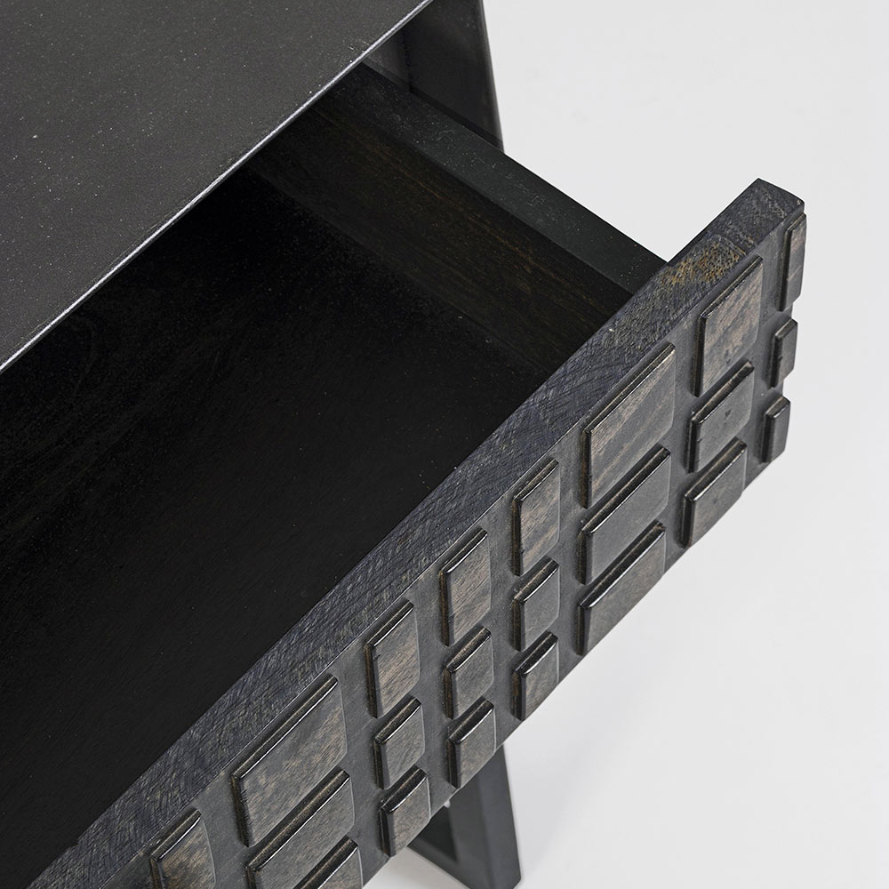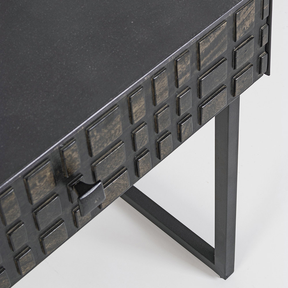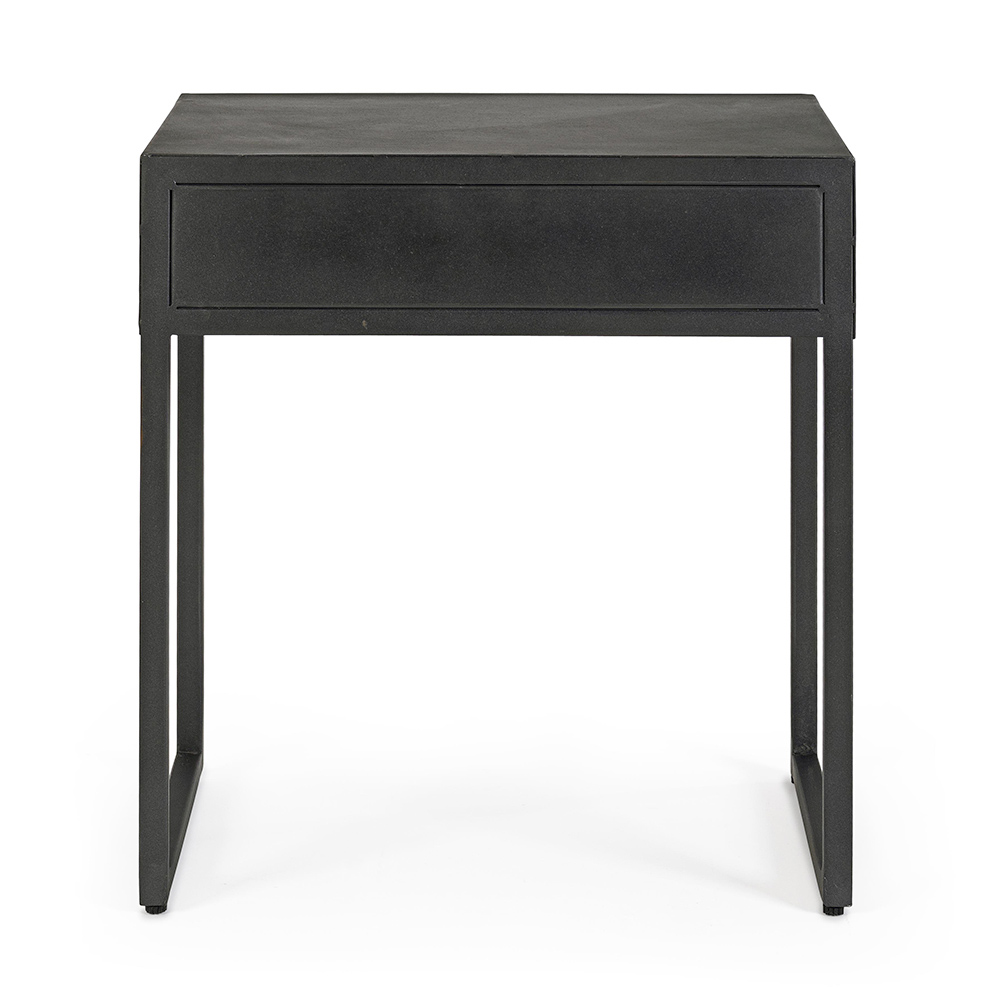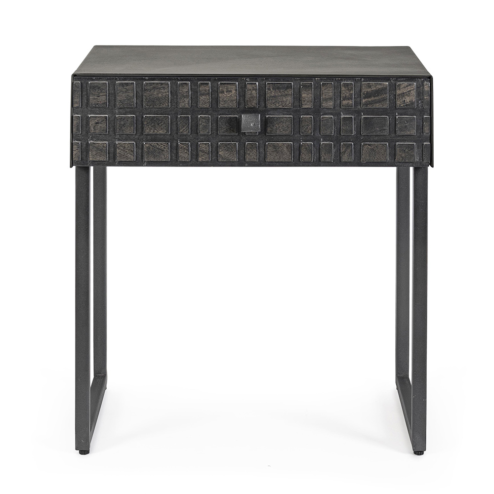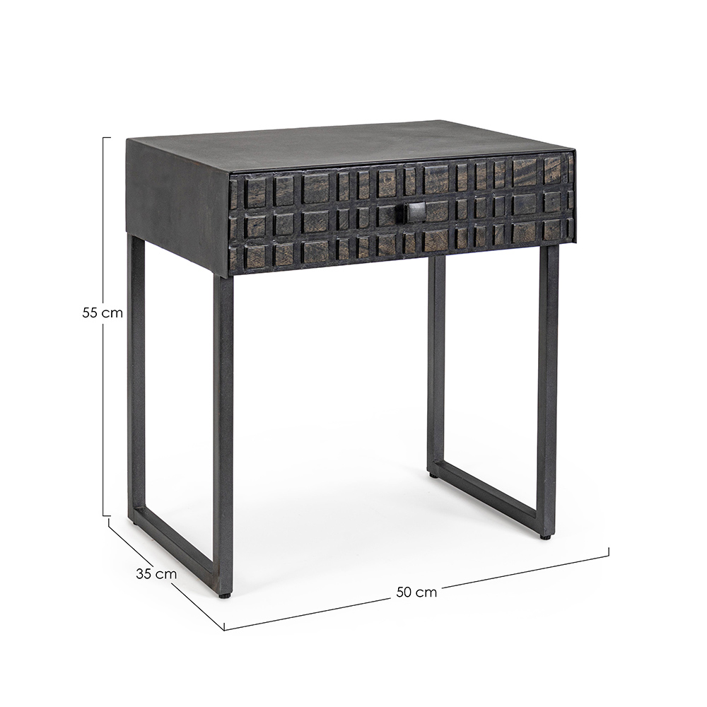 Noptiera din otel cu sertar din lemn de mango de design etnic.