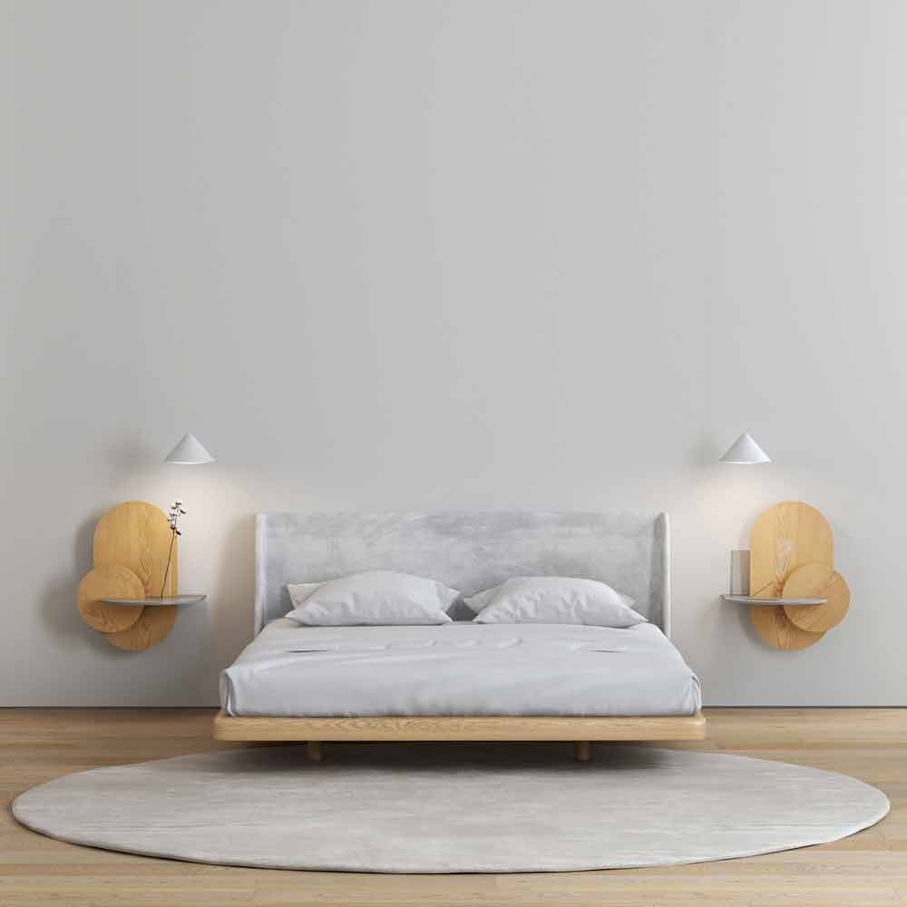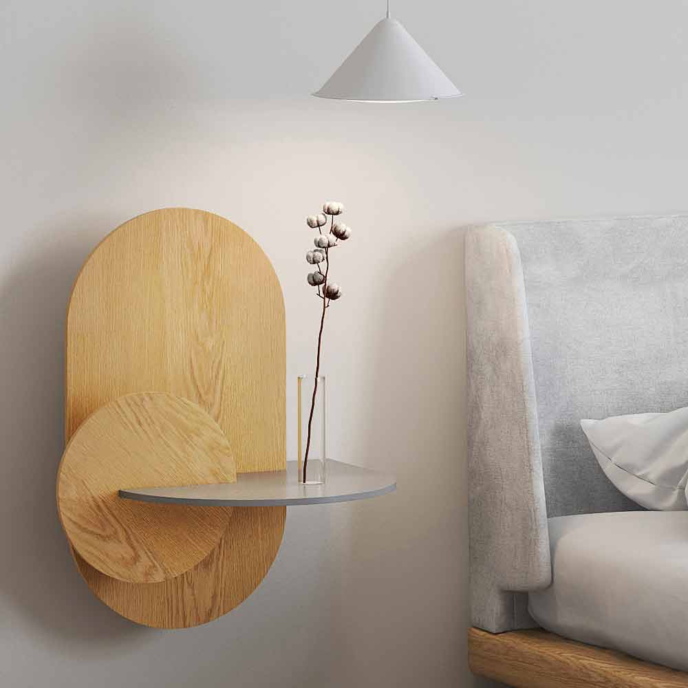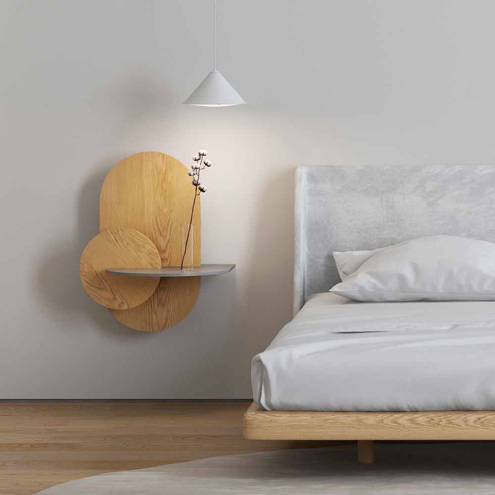 Această noptieră modulară este alcătuită din 3 panouri din placaj, dintre care 2 finisate în stejar și unul finisat în frasin . Panoul care acționează ca o suprafață reală de sprijin este fixat pe perete, permițând astfel niciun tip de bază care să poată ocupa mai mult spațiu, în timp ce cele două panouri poziționate vertical sunt modulare și permit până la 8 configurații diferite, obținându-se astfel un produs personalizabil în funcție de nevoile dvs. .