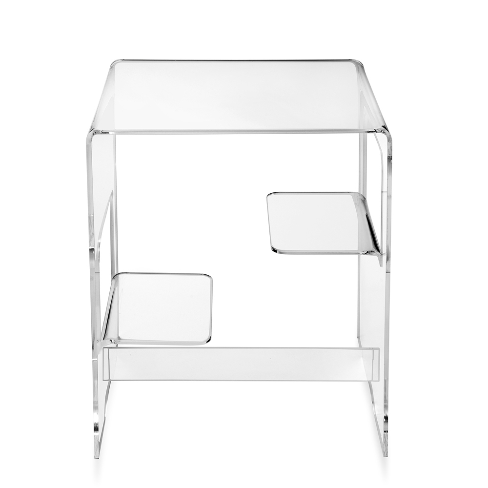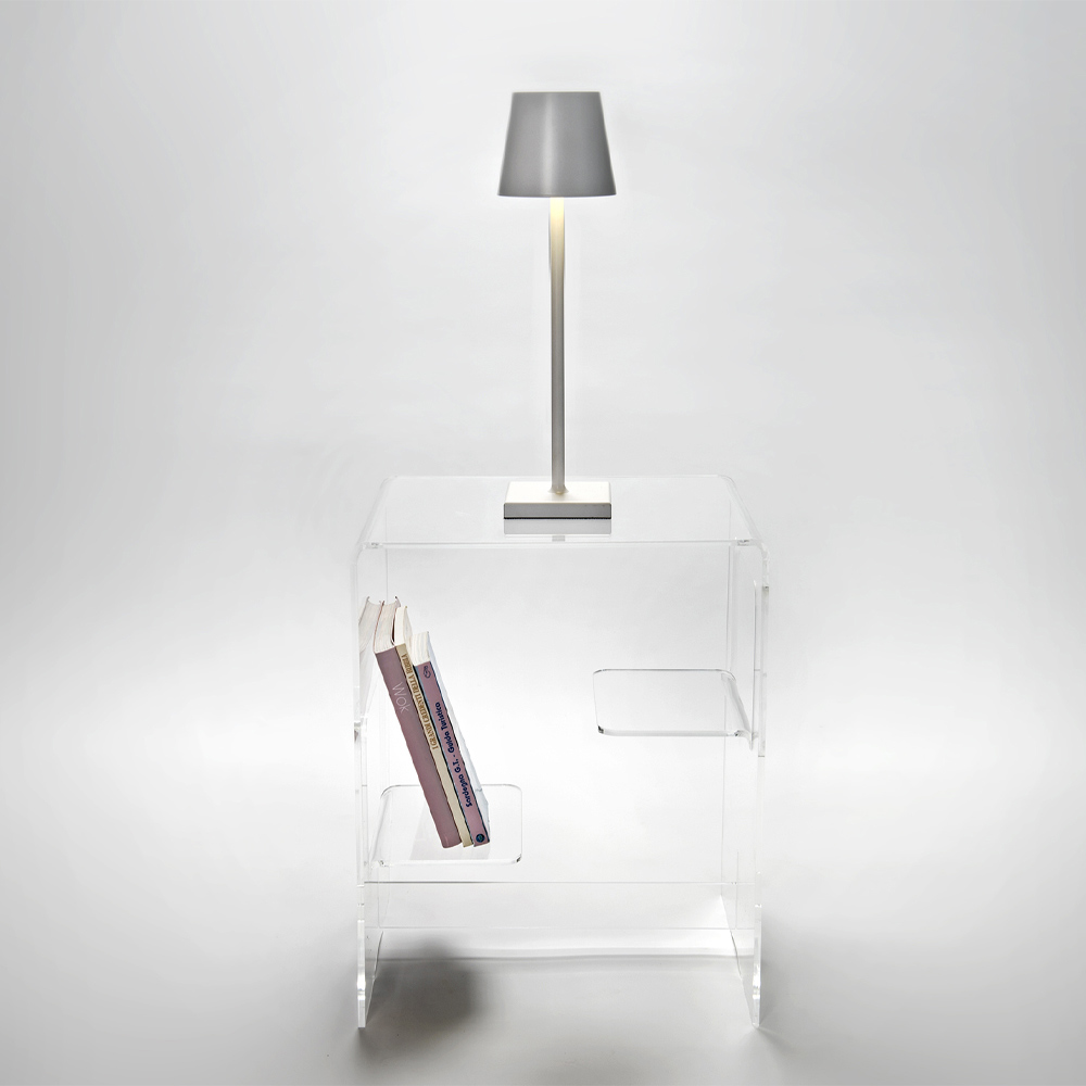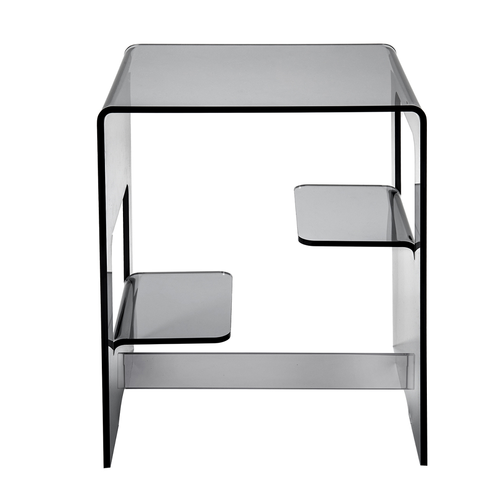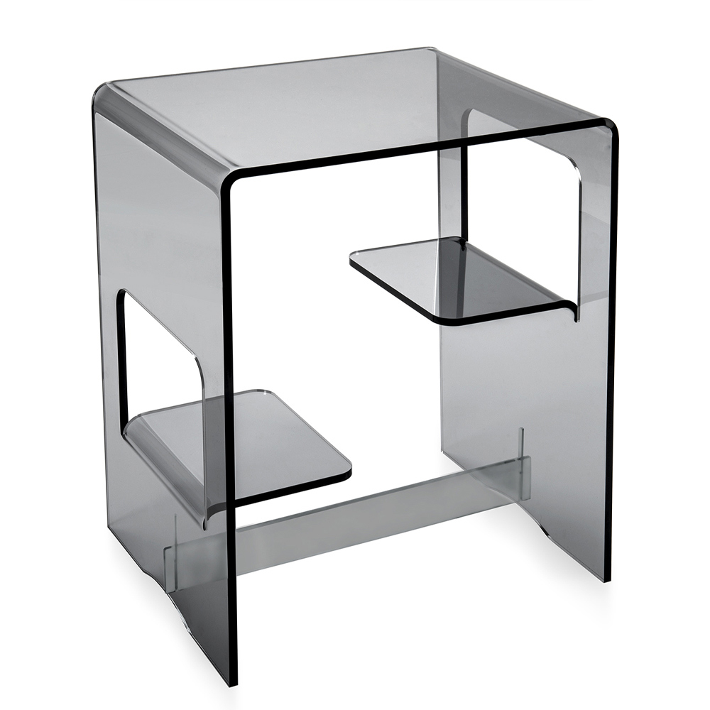 Noptieră sau măsuță de cafea de design modern în plexiglas transparent sau afumat fabricat în Italia.