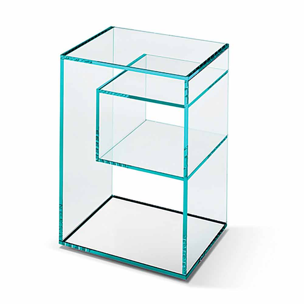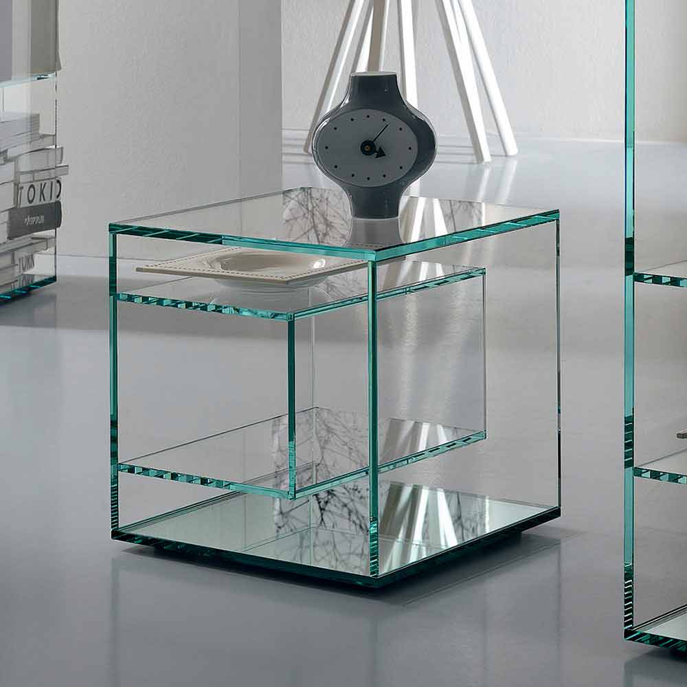 Această noptieră se caracterizează prin designul său elegant și minimal, realizat în întregime din sticlă extra-clară.