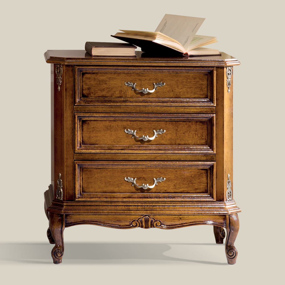 Noptiera in stil clasic potrivita pentru a se incadra elegant in mediul dormitorului, sau in living, creand o atmosfera rafinata si eficienta. Este realizata din lemn de nuc Bassano si are 3 sertare practice. Complet realizat în Italia și lucrat manual de meșteri pricepuți , finisat cu înțelepciune și gust pentru eleganță. Producția este realizată folosind materiale fine , iar lucrul este realizat manual cu cea mai mare grijă și profesionalism care distinge produsele Made in Italy .