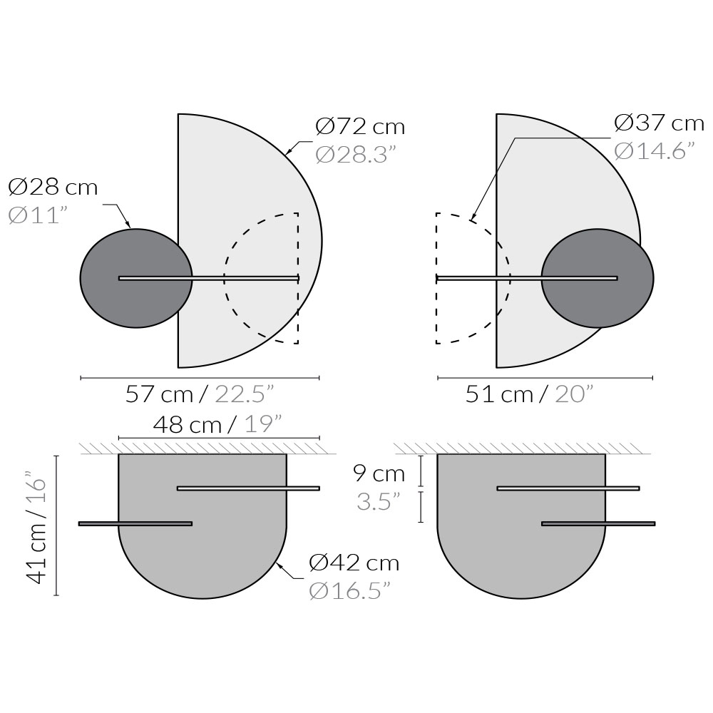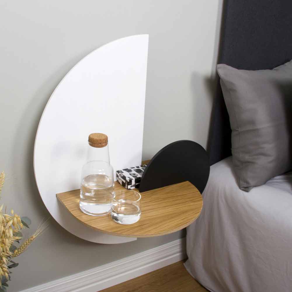 Ceea ce caracterizează această noptieră este designul său inovator și original capabil să revoluționeze amenajarea oricărui dormitor care are nevoie de o notă de personalitate și eleganță . Structura sa are linii geometrice simple, care conferă produsului unicitate și armonie între forme. Structura sa este realizată prin utilizarea a 3 panouri de placaj, dintre care unul finisat în stejar fixat pe perete, care acționează ca o suprafață reală de sprijin și două în finisaj de cenușă negru și alb, care sunt montate pe acesta și care permit până la 8 diferite configurații care vă permit astfel să obțineți un produs care poate fi personalizat în funcție de nevoile dumneavoastră.
