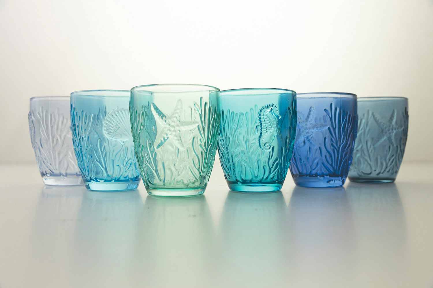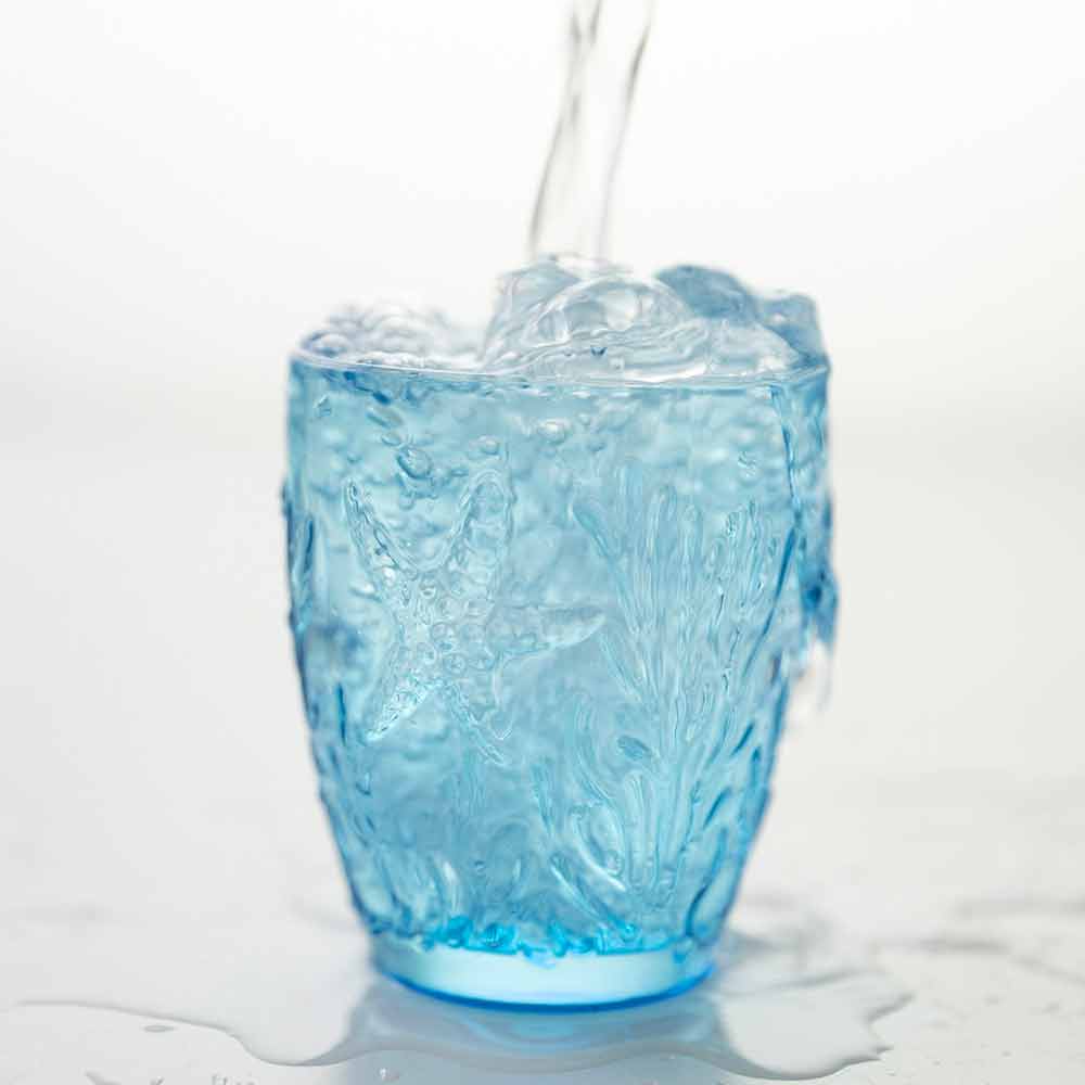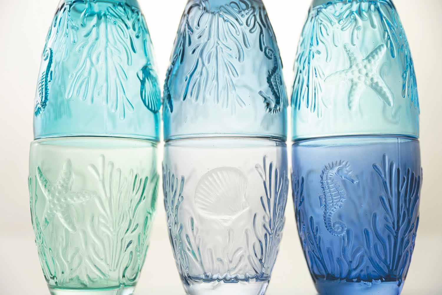 transparența paharului este combinată cu conceptul de apă cristalină a mării.