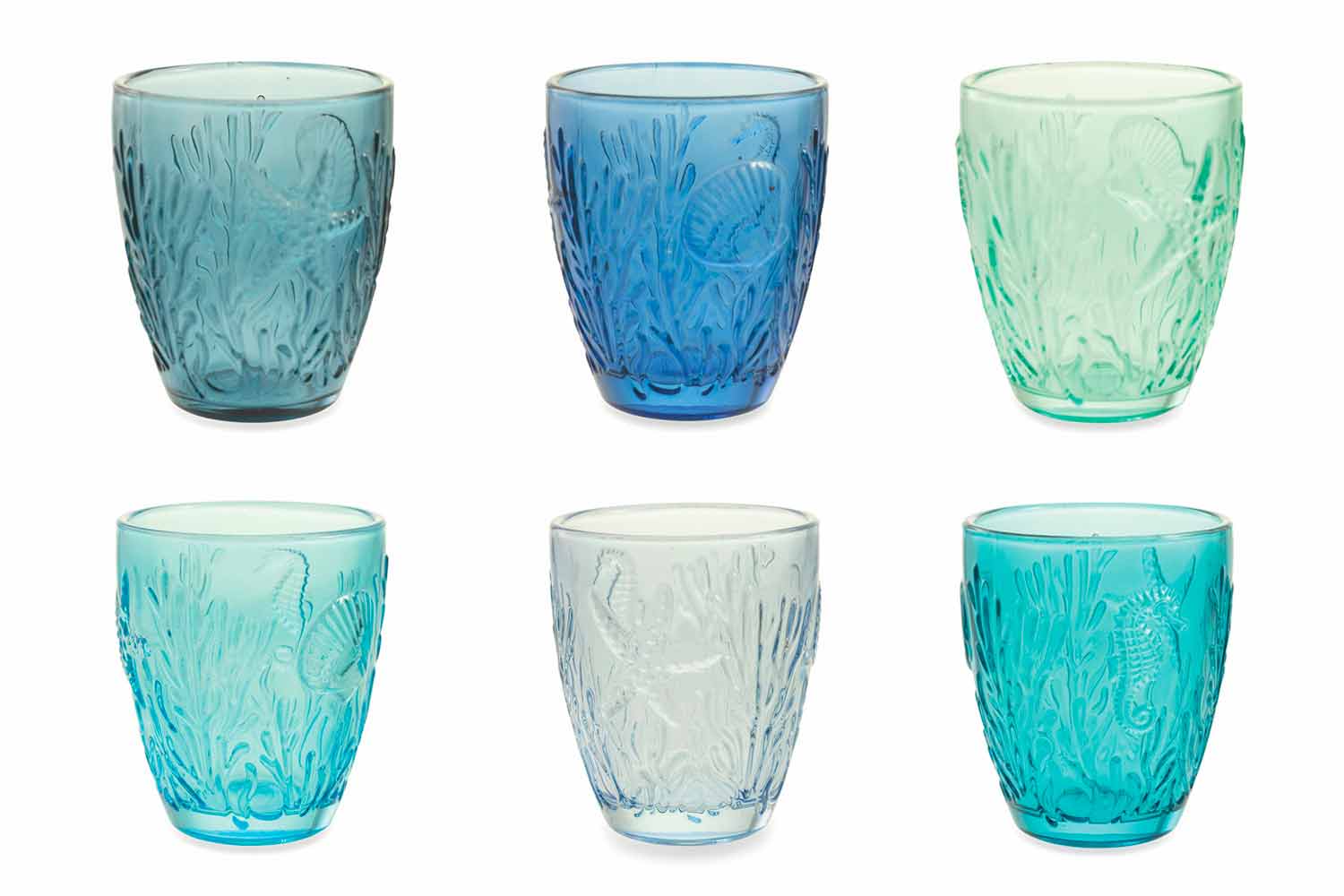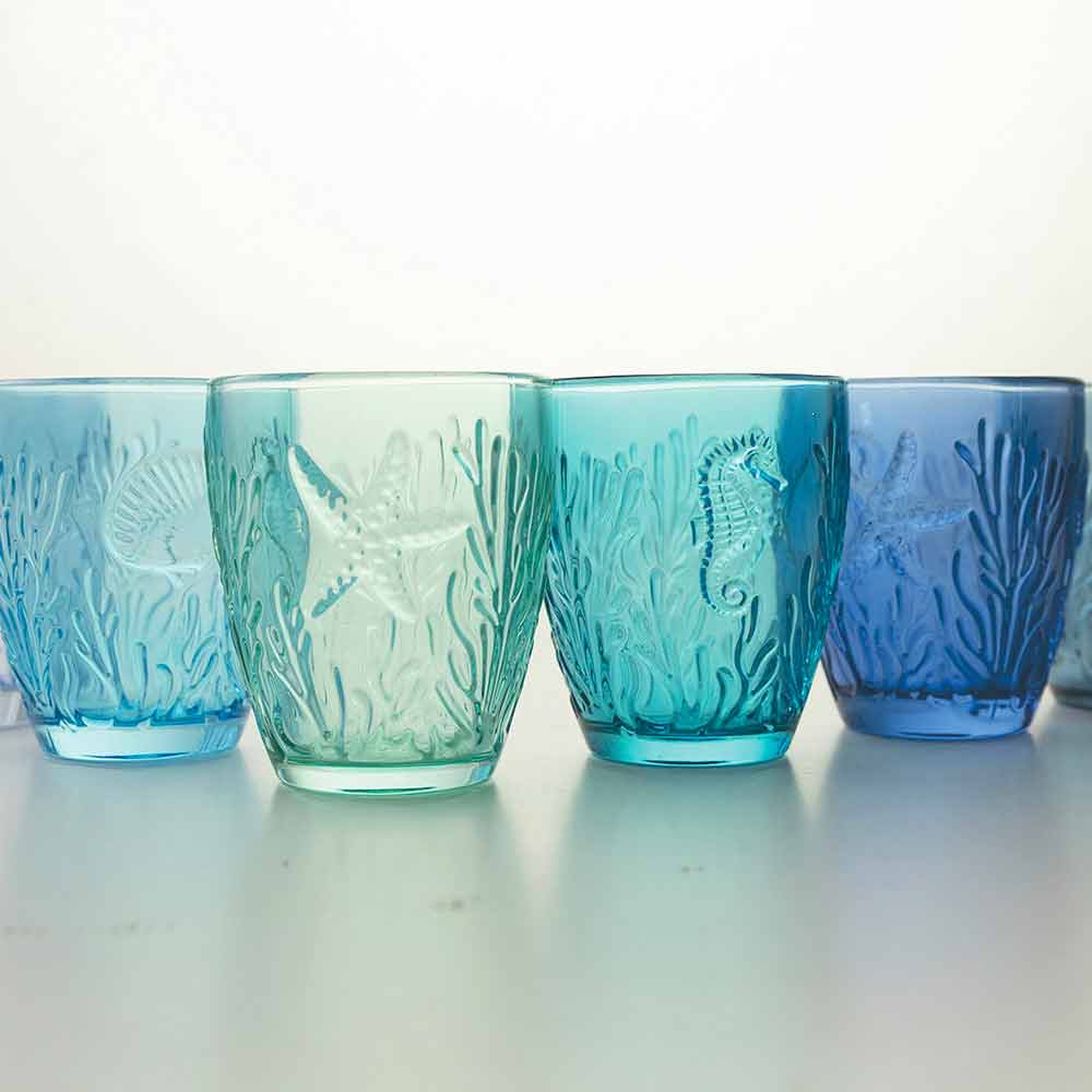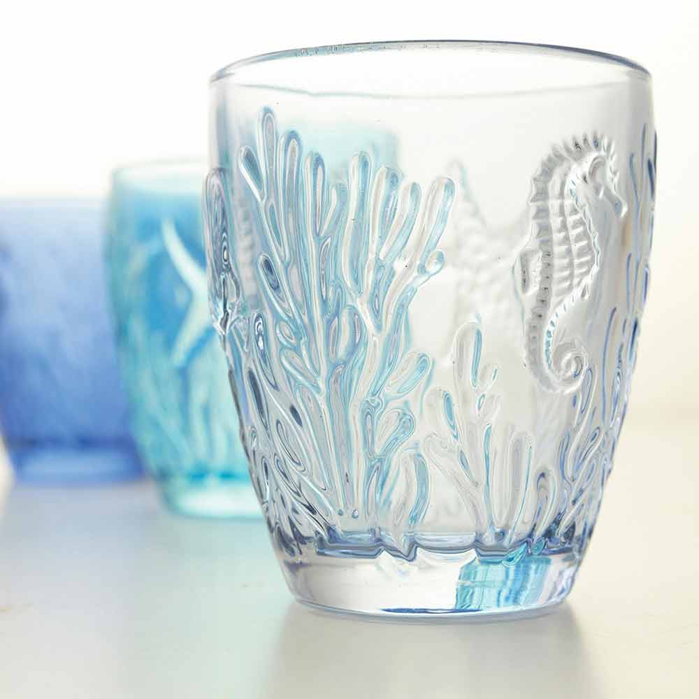 transparența paharului este combinată cu conceptul de apă cristalină a mării.