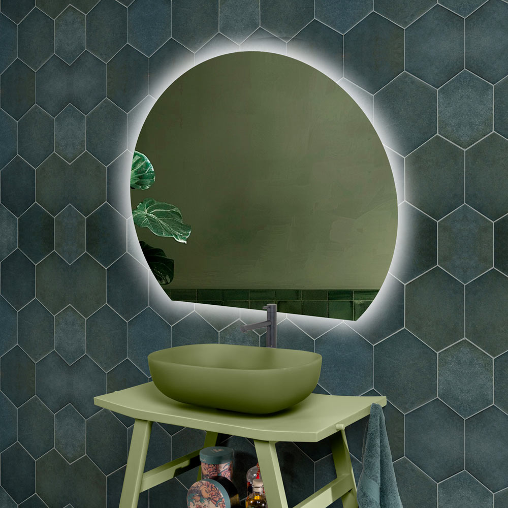 Lumina LED integrată , distribuită uniform de-a lungul perimetrului, creează un efect delicat care sporește puritatea formei circulare și contribuie la o atmosferă primitoare și rafinată. Perfectă pentru îngrijirea personală, oferă o iluminare funcțională, dar evocatoare.