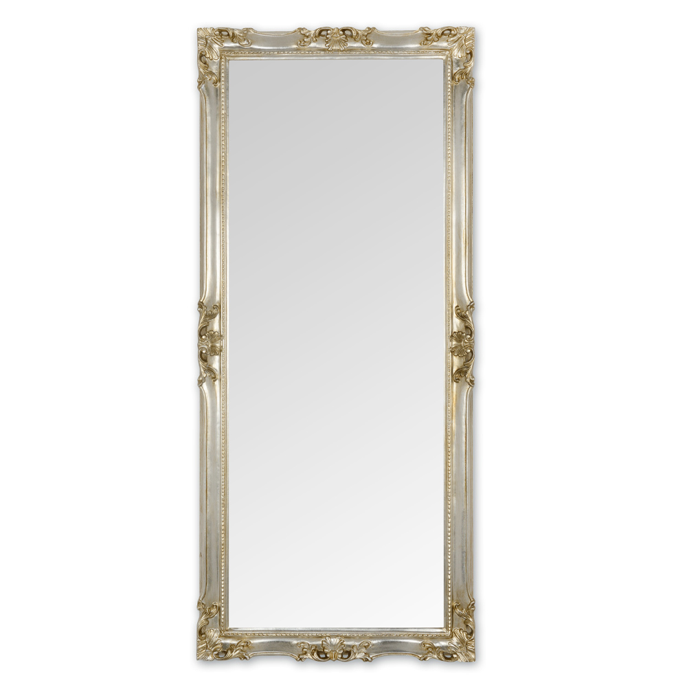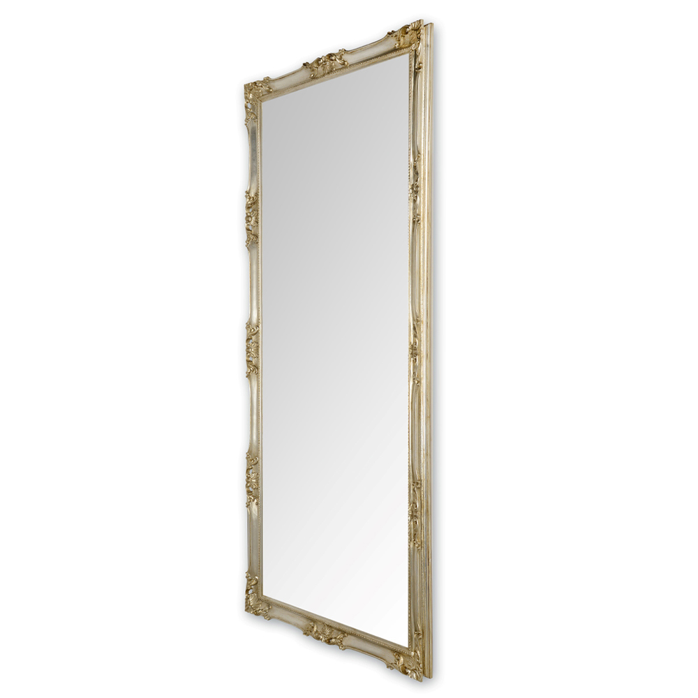 Oglindă din cristal și lemn cu finisaj în frunze de aur sau argint Fabricat în Italia.