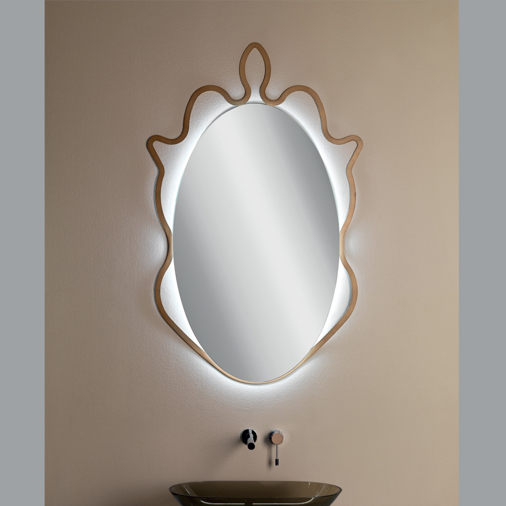 Această oglindă artizanală italiană este chintesența eleganței funcționale , un tribut adus măiestriei designului care îmbunătățește fiecare spațiu prin prezența sa. Profilul său sinuos și organic, care reflectă formele moi ale naturii, este încadrat de un contur rafinat din metal prețios , care îl transformă într-o adevărată piesă de artă.