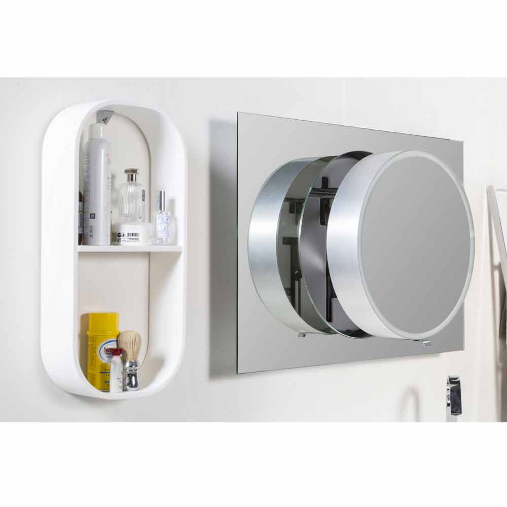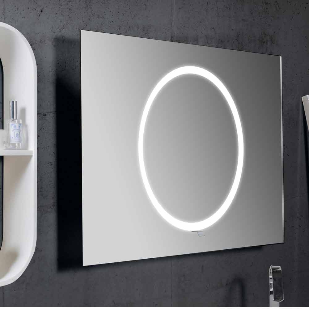 Oglindă cu margine lustruită de 6 mm cu structură circulară internă care poate fi iluminată cu LED și se mișcă automat. Partea circulară se deplasează către utilizator cu un simplu gest, apropiindu-se de față și luminându-se pe circumferință. Montare orizontala. Șuruburi și elemente de fixare și instrucțiuni incluse în kit.