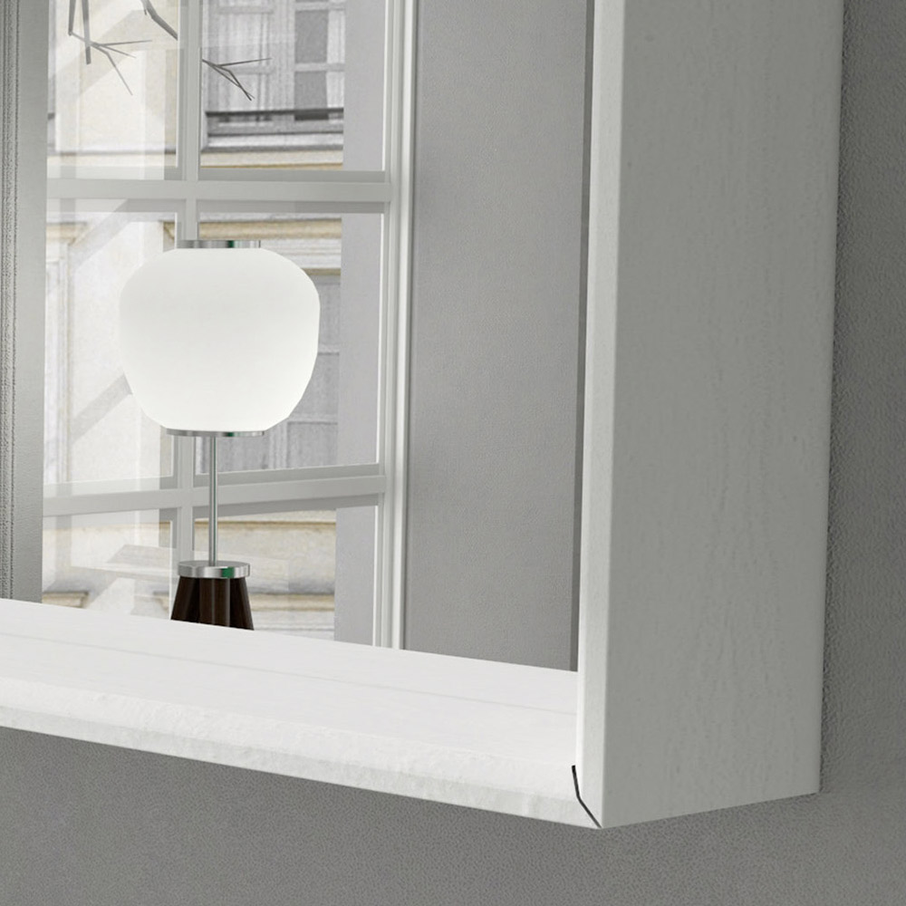 oglindă de perete cu design dreptunghiular disponibil în două dimensiuni se caracterizează prin rama sa elegantă în formă de cutie din lemn lăcuit alb mat, care îi conferă un aspect modern și original.