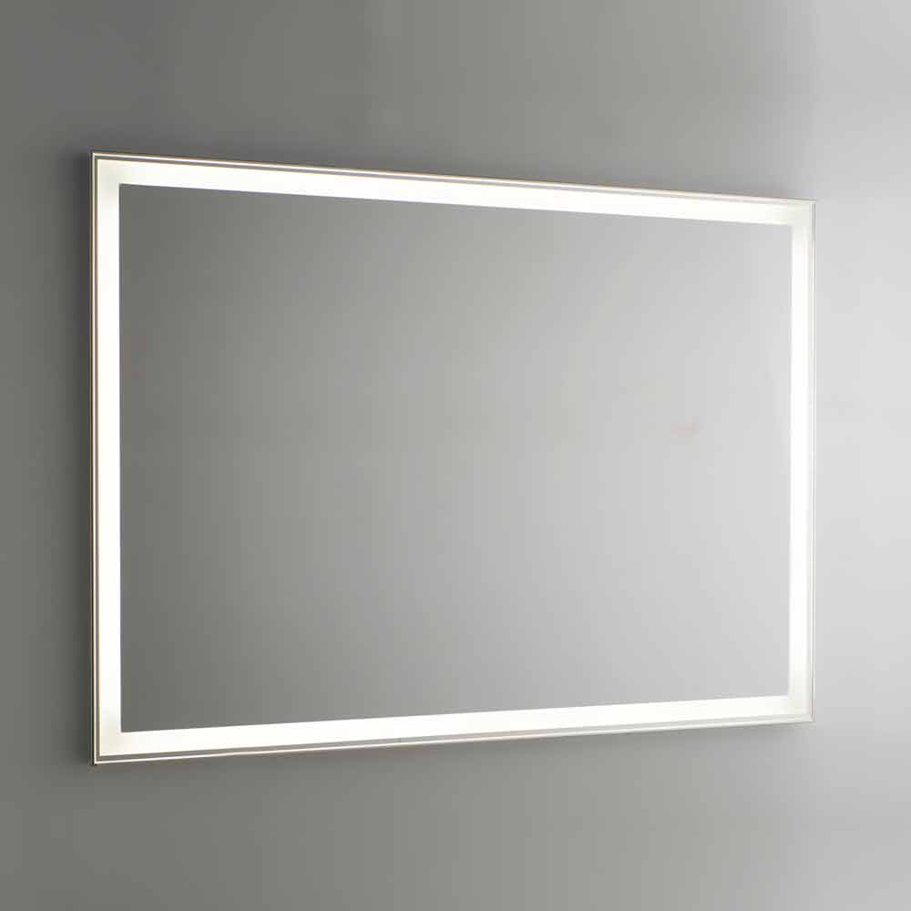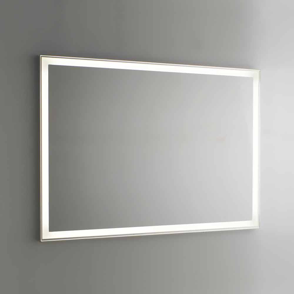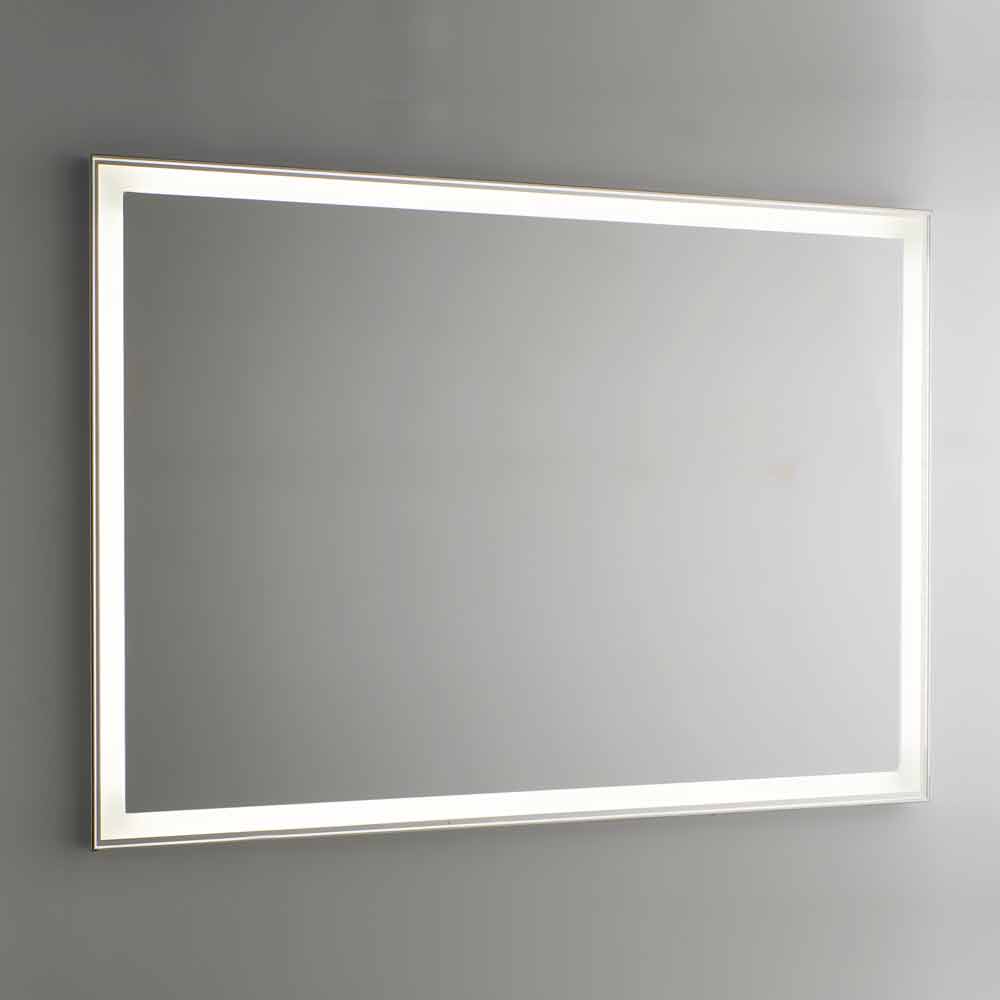Oglindă de perete cu design modern, cu sablare și lumină LED Made in Italy.