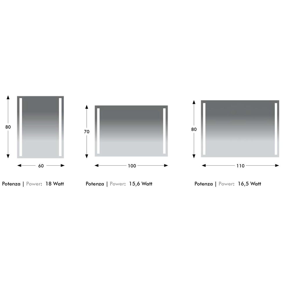 Dimensiuni disponibile:- L 60 x P 3 x H 80 cm (18W);