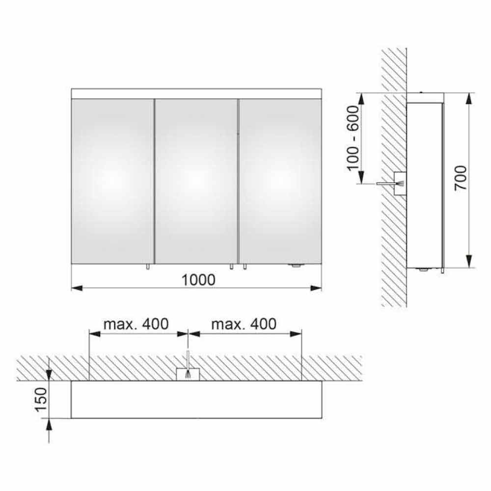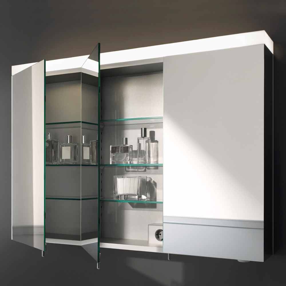 Acest tip de iluminat emite un fascicul de lumină albă caldă capabil să creeze o atmosferă confortabilă și primitoare. Împreună cu cea frontală care acoperă partea superioară a oglinzii, acest articol este îmbogățit de iluminatul inferior care evidențiază robinetele. Există, de asemenea, un dimmer rotativ practic poziționat sub dulap, care vă permite să decideți între cele 3 moduri de iluminare diferite și să reduceți intensitatea luminii.