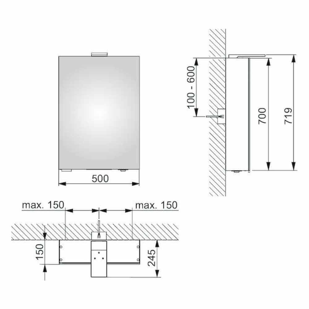 Oglindă container cu ușă articulată cu o oglindă (de asemenea, internă) și oglinzi laterale echipate cu iluminare cu LED.