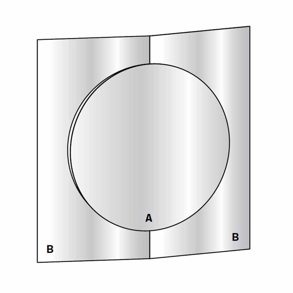 Are o structură compusă din două panouri oglindite (B) ușor înclinate și un al treilea element rotund central.