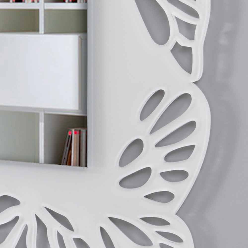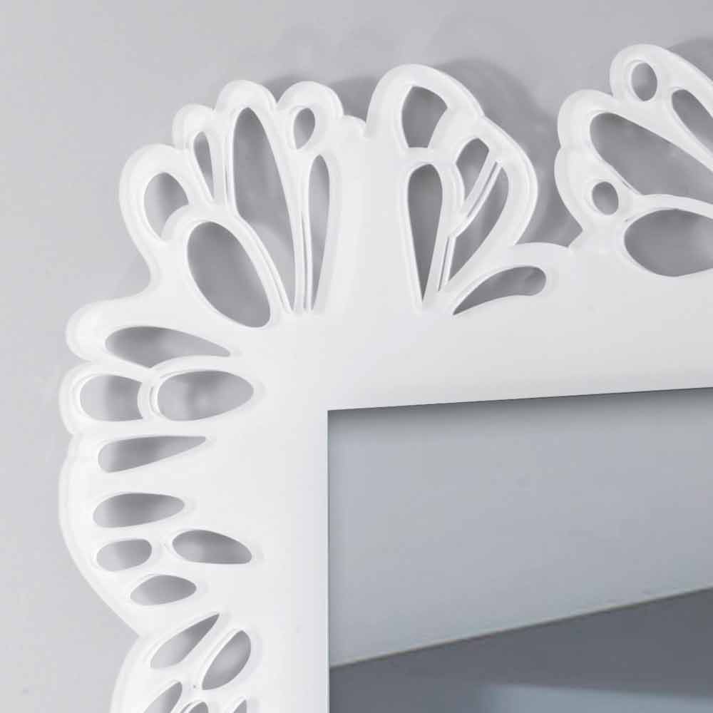 Oglindă de perete dreptunghiulară cu cadru decorat alb, în plexiglas cu design modern, fabricat în Italia.