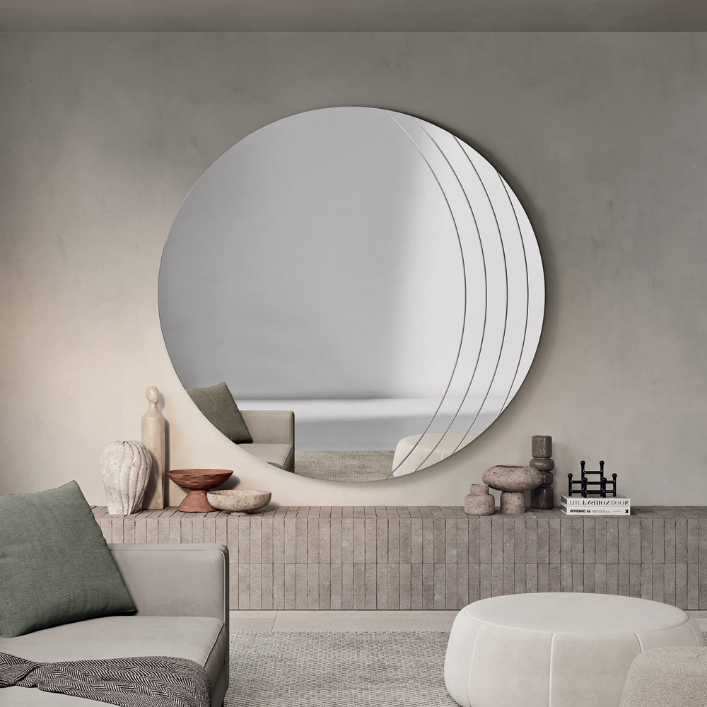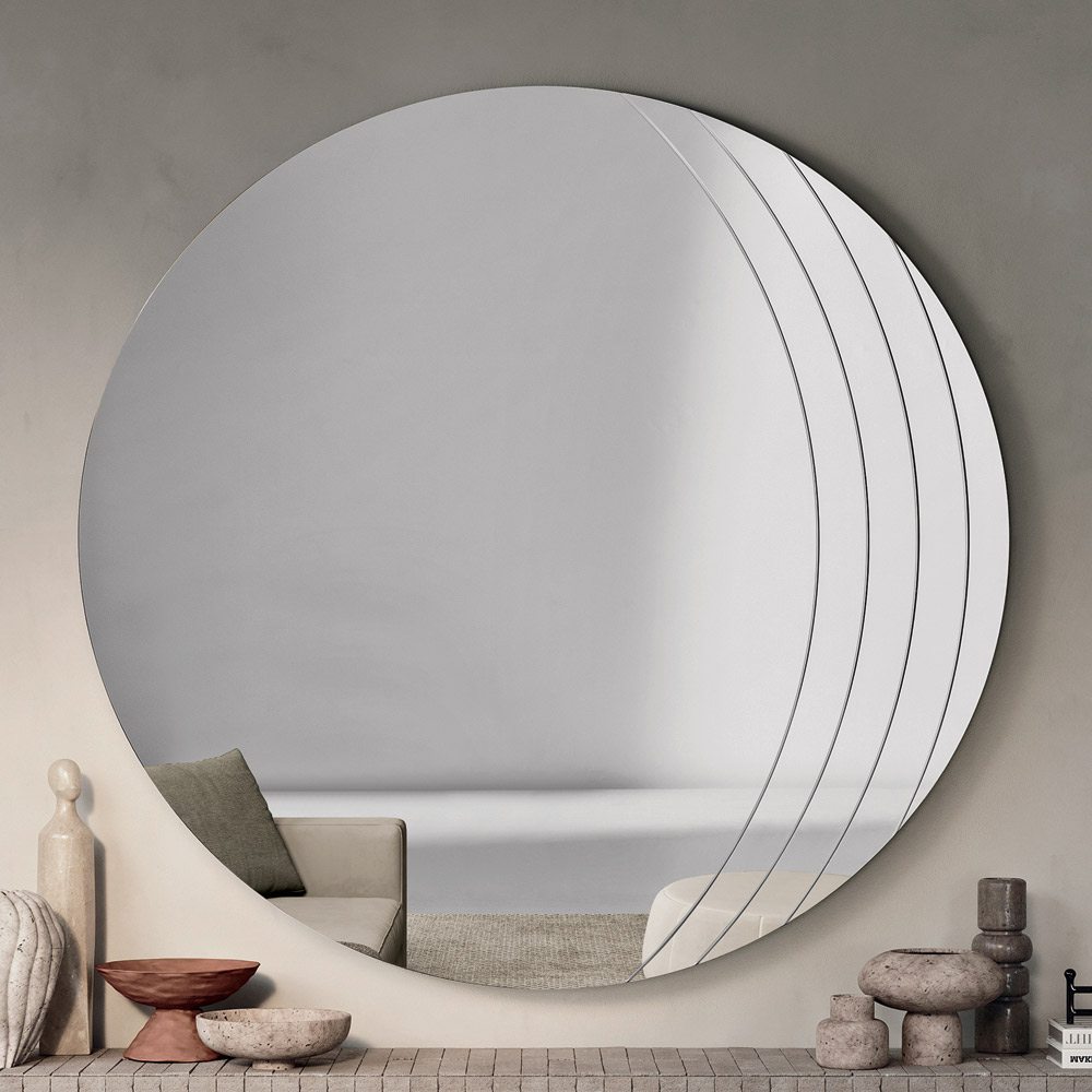 Disponibilă în diverse dimensiuni și forme - două versiuni circulare și una dreptunghiulară cu colțuri rotunjite - oglinda se adaptează cu ușurință la diverse contexte de mobilier, devenind un complement elegant pentru spațiile contemporane și sofisticate.