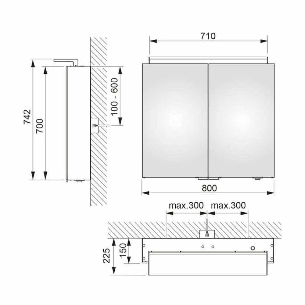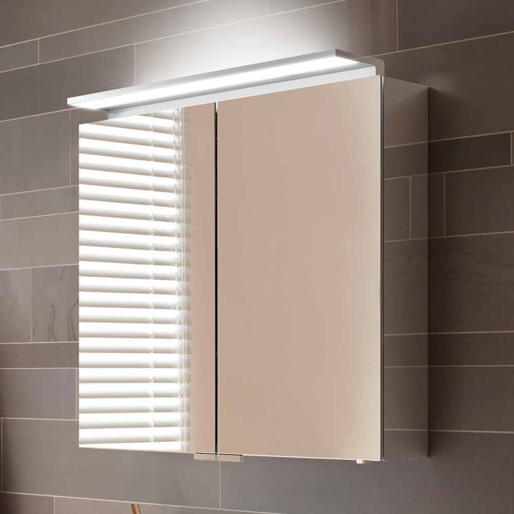Oglindă container cu 2 uși articulate cu oglinzi (de asemenea, interne) și oglinzi laterale echipate cu iluminare LED.