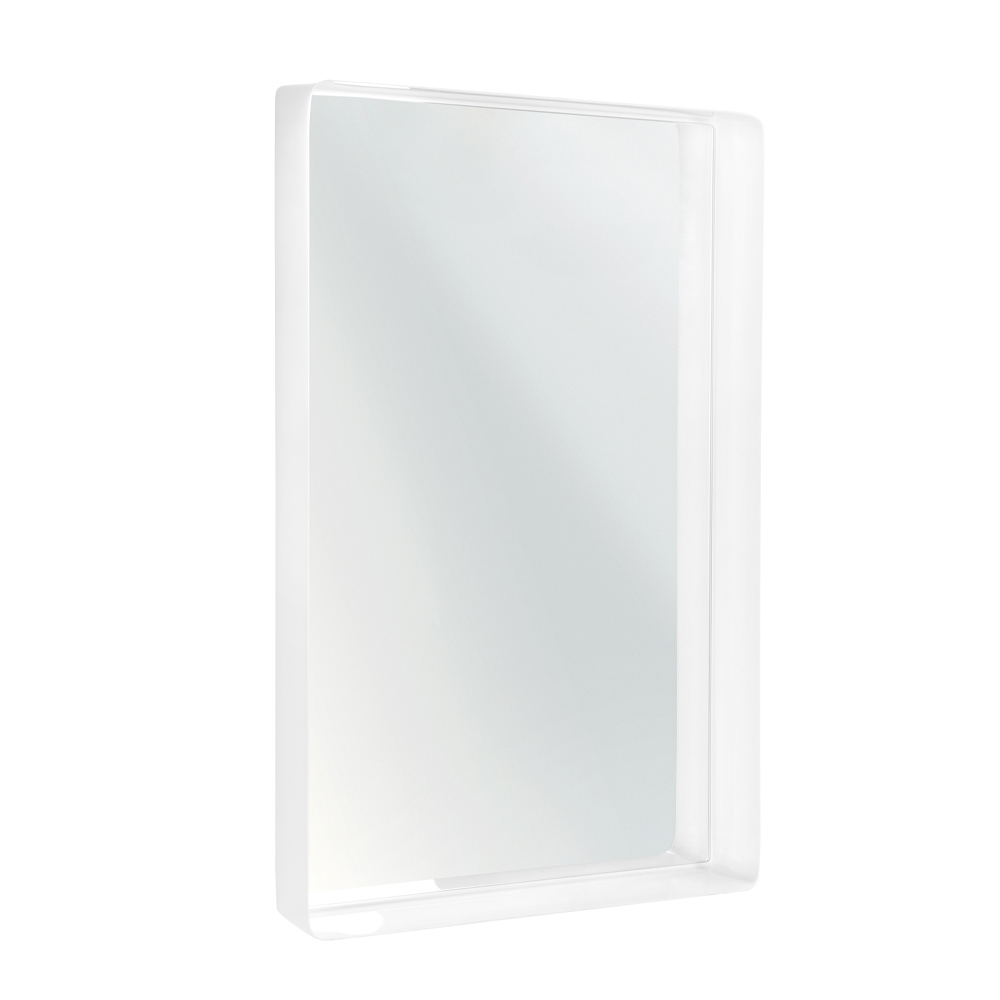 Oglindă cu cadru din plexiglas transparent și vopsea cu lumină led, fabricată în Italia.