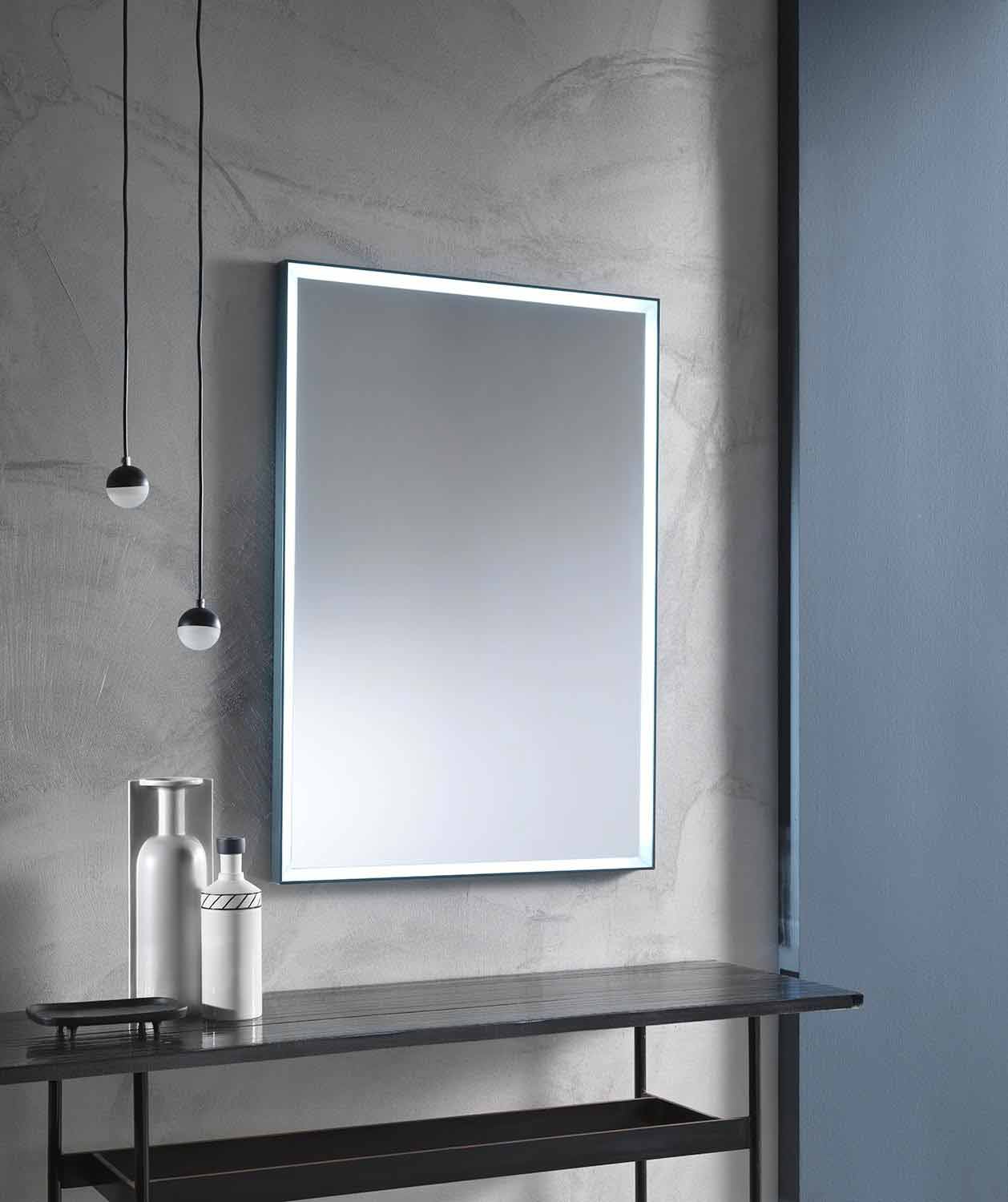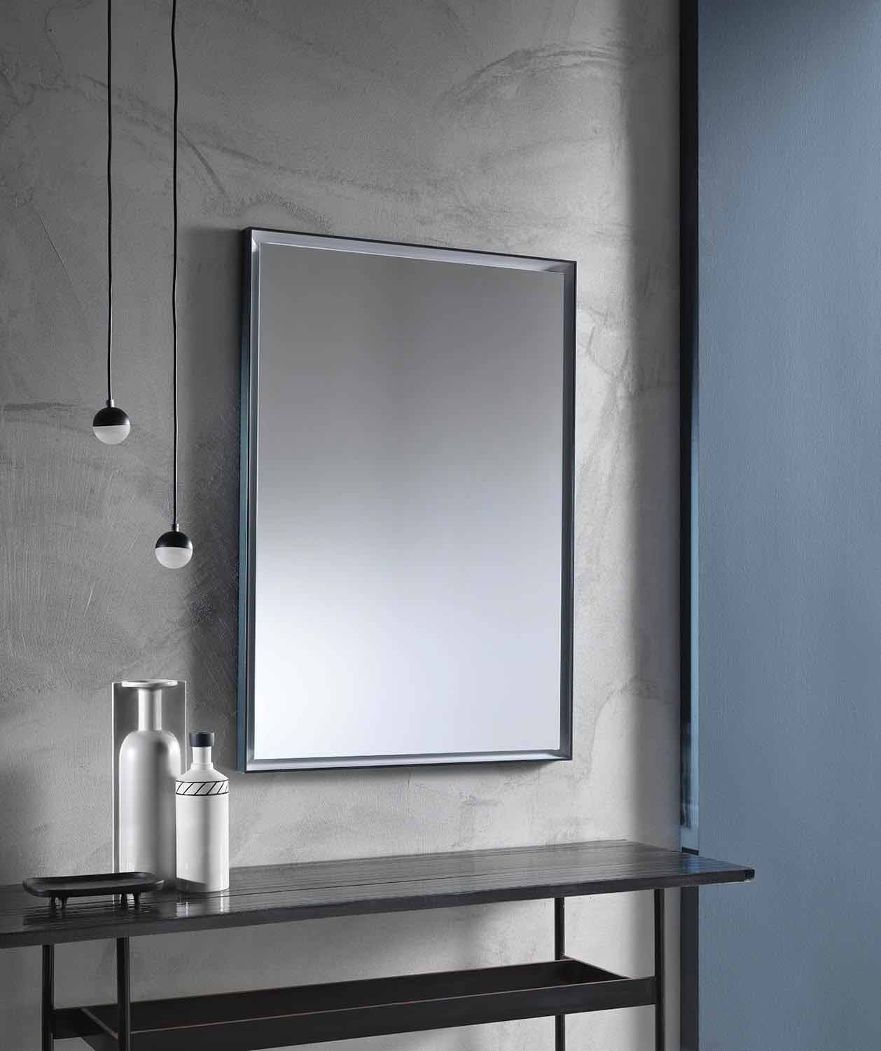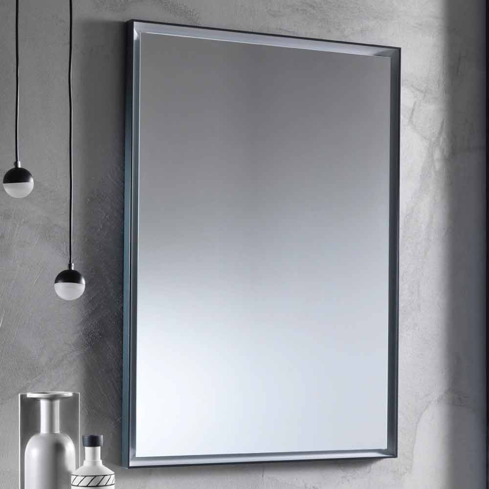 Oglindă modernă de perete cu design dreptunghiular, cu cadru din aluminiu și lumină LED Made in Italy.