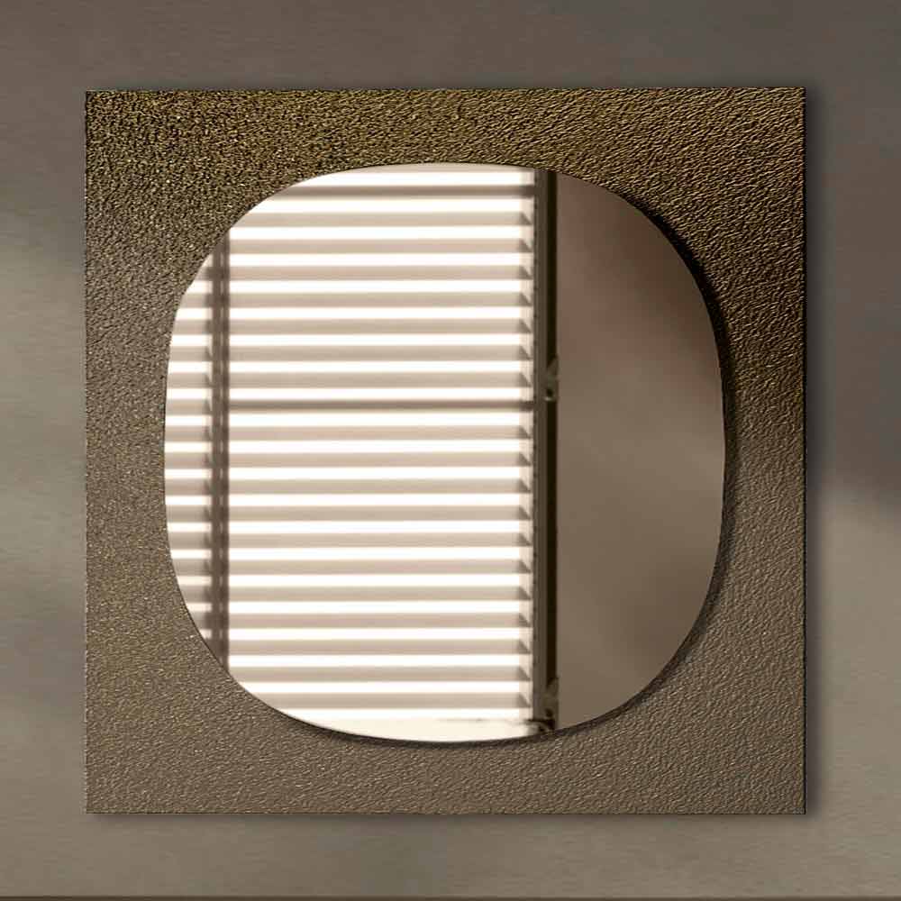 Oglindă de perete din sticlă forjată finisată bronz fabricată în Italia.