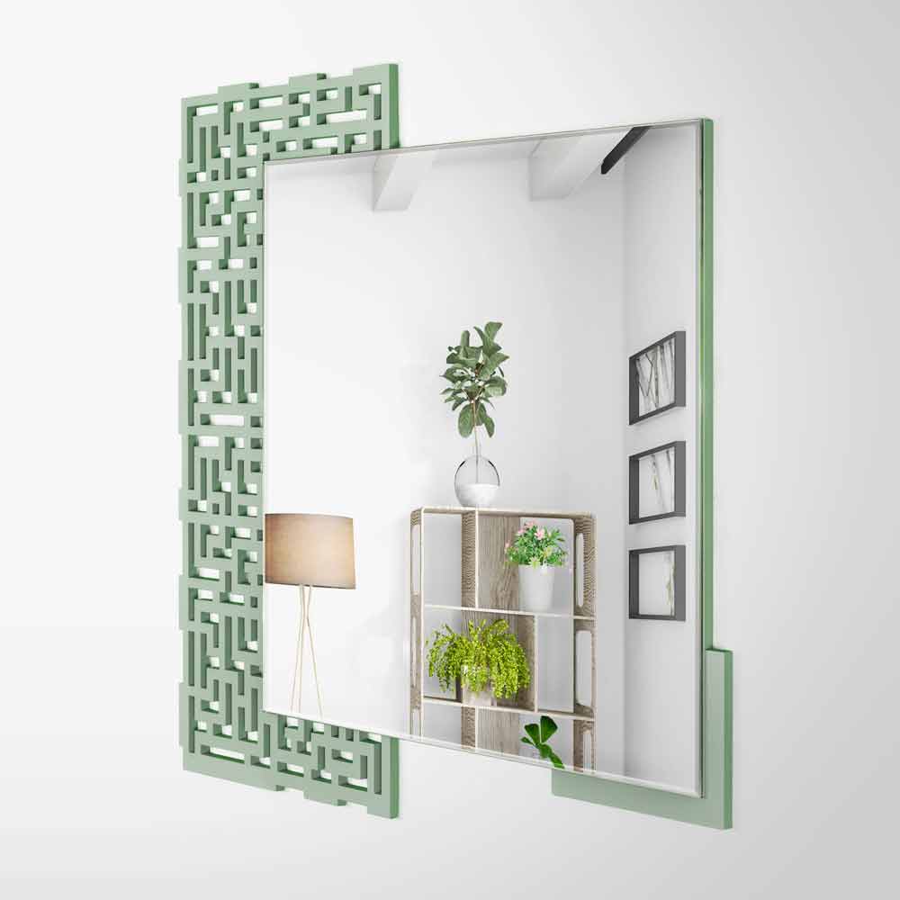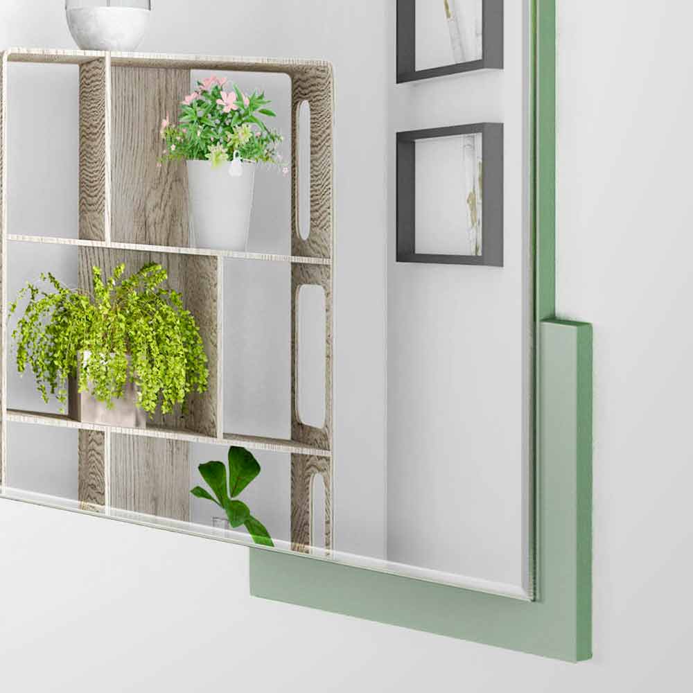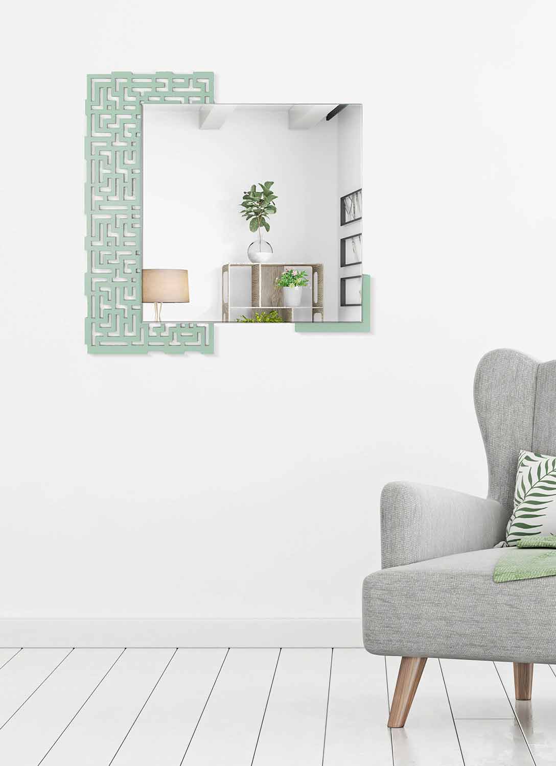 Oglinda de perete moderna, design geometric patrat, din lemn verde si fabricata in Italia.