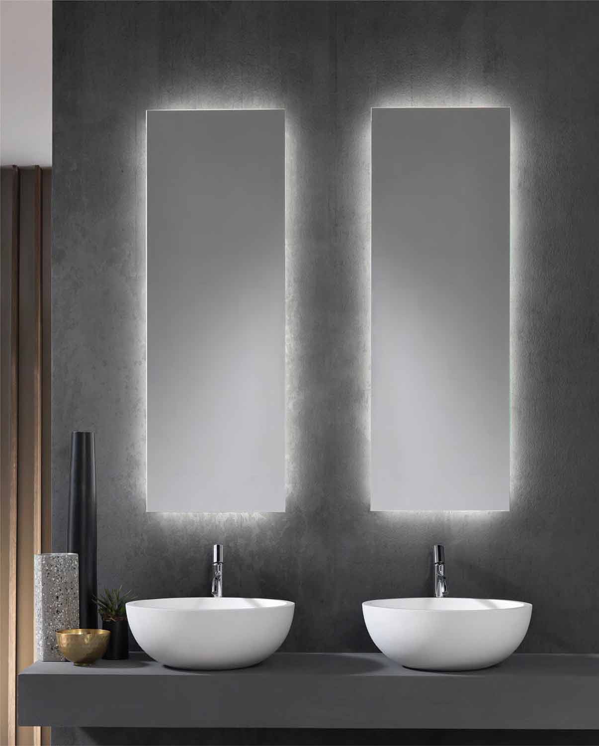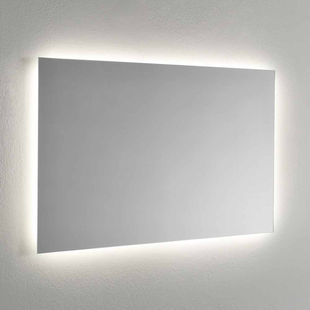 Oglindă de perete dreptunghiulară modernă cu iluminare din spate cu lumină LED Made in Italy.