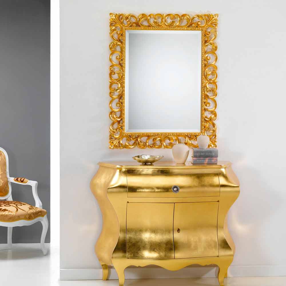 Oglinda Paris este caracterizat printr-o măiestrie realizată folosind materiale de înaltă calitate și folosind experiența artizani italieni calificați. Cadrul este realizat din lemn decorate cu sculpturi. finisaj frunze de aur. Oglinda cu sticla teșite, o grosime de 4 mm. Made in Italy. Pentru a închide vertical sau orizontal.