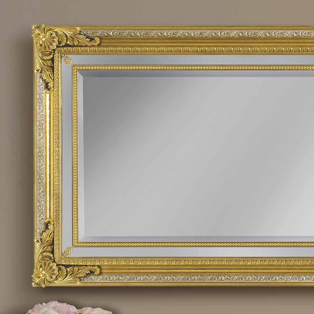 Această oglindă elegantă este un exemplu strălucitor de frumusețe și măiestrie. Rama este un triumf al designului clasic, îmbogățit cu detalii complicate și frize care captează lumina și farmecul epocii baroc. Fiecare colț este împodobit cu ornamente florale și motive voluptoase care se îmbină într-un cadru de măreție pură.