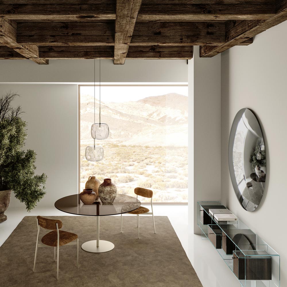 Această oglindă circulară este emblema sobrietății și minimalismului , un accesoriu de mobilier care se adaptează perfect oricărui mediu modern sau tradițional. Suprafața sa reflectorizantă, impecabilă, nu numai că amplifică lumina și spațiul, dar servește și ca un punct focal elegant în orice cameră.