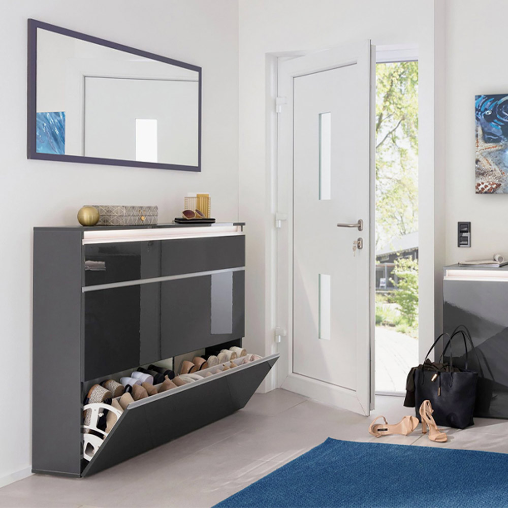 Oglinda de perete dreptunghiulara alb sau antracit si design minimalist fabricata in Italia.
