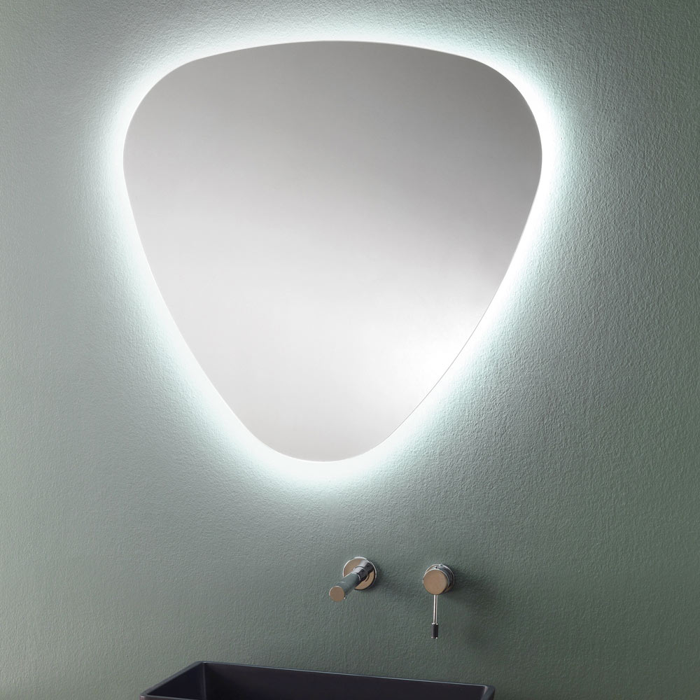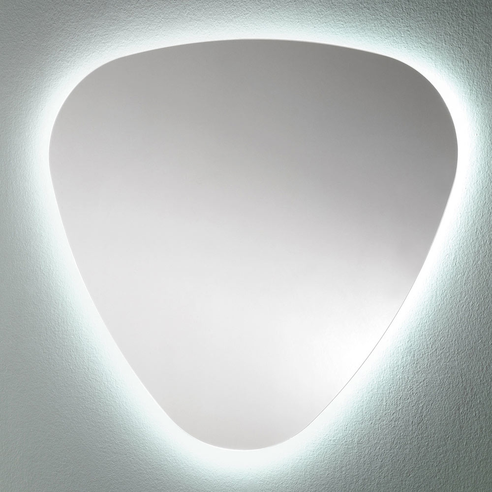 Oglindă de perete în formă de muchie lustruită, cu iluminare din spate cu LED, de înaltă calitate, fabricată în Italia.