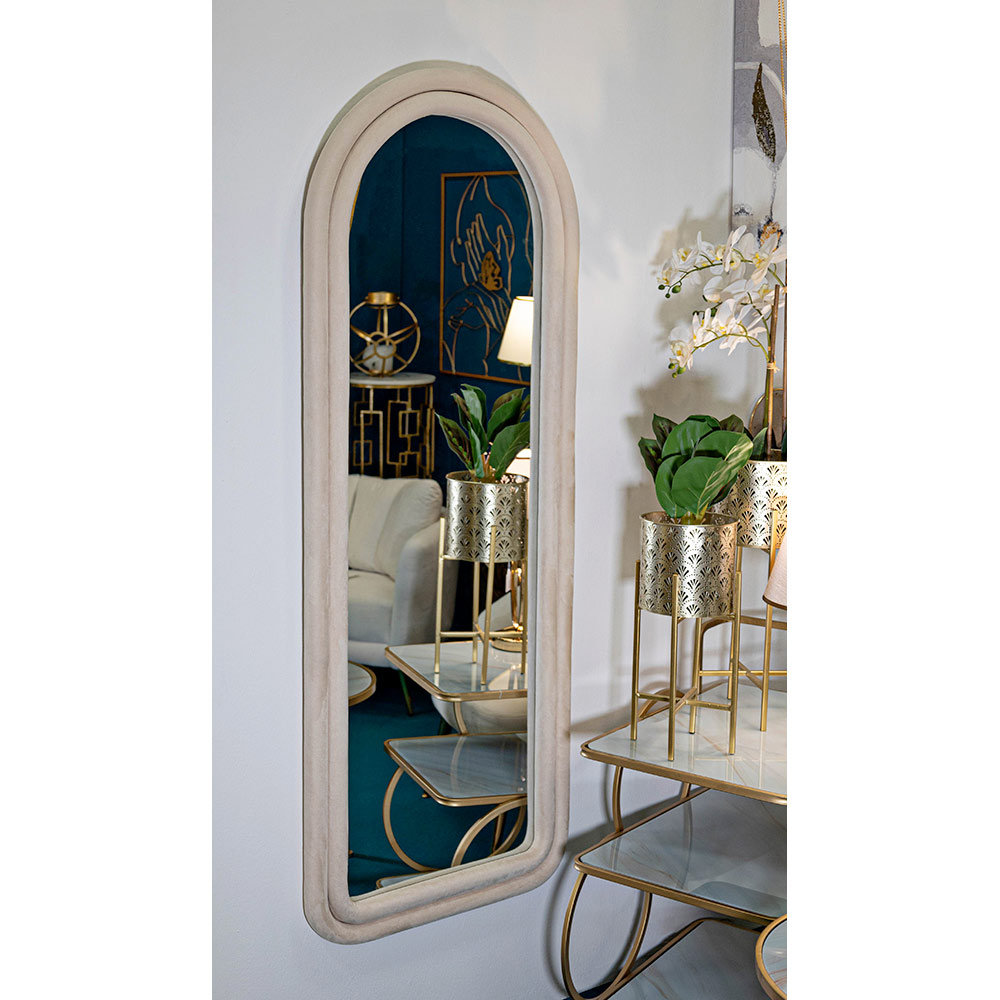 Această oglindă cu ramă întruchipează esența rafinamentului modern și face o declarație ca piesă centrală în orice cameră. Rama, cu curbe moi și învăluitoare , are un design care amintește de ferestrele antice ogivale, aducând cu el o aromă de eleganță clasică reinterpretată într-o cheie contemporană. Finisajul cadrului se îmbină armonios cu orice mediu, creând un contrast de culori care este o plăcere pură pentru ochi.
