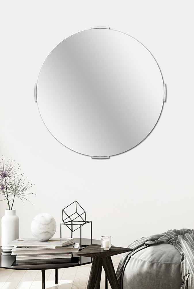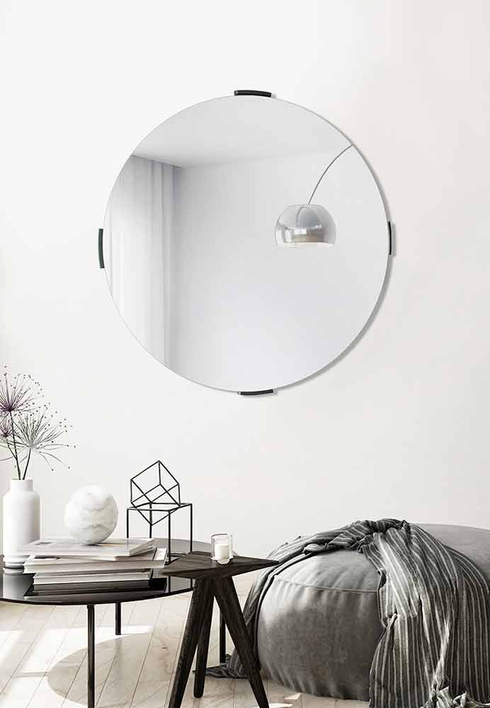 Oglinda de perete modernă și rotundă, cu design minimal, realizată în Italia.