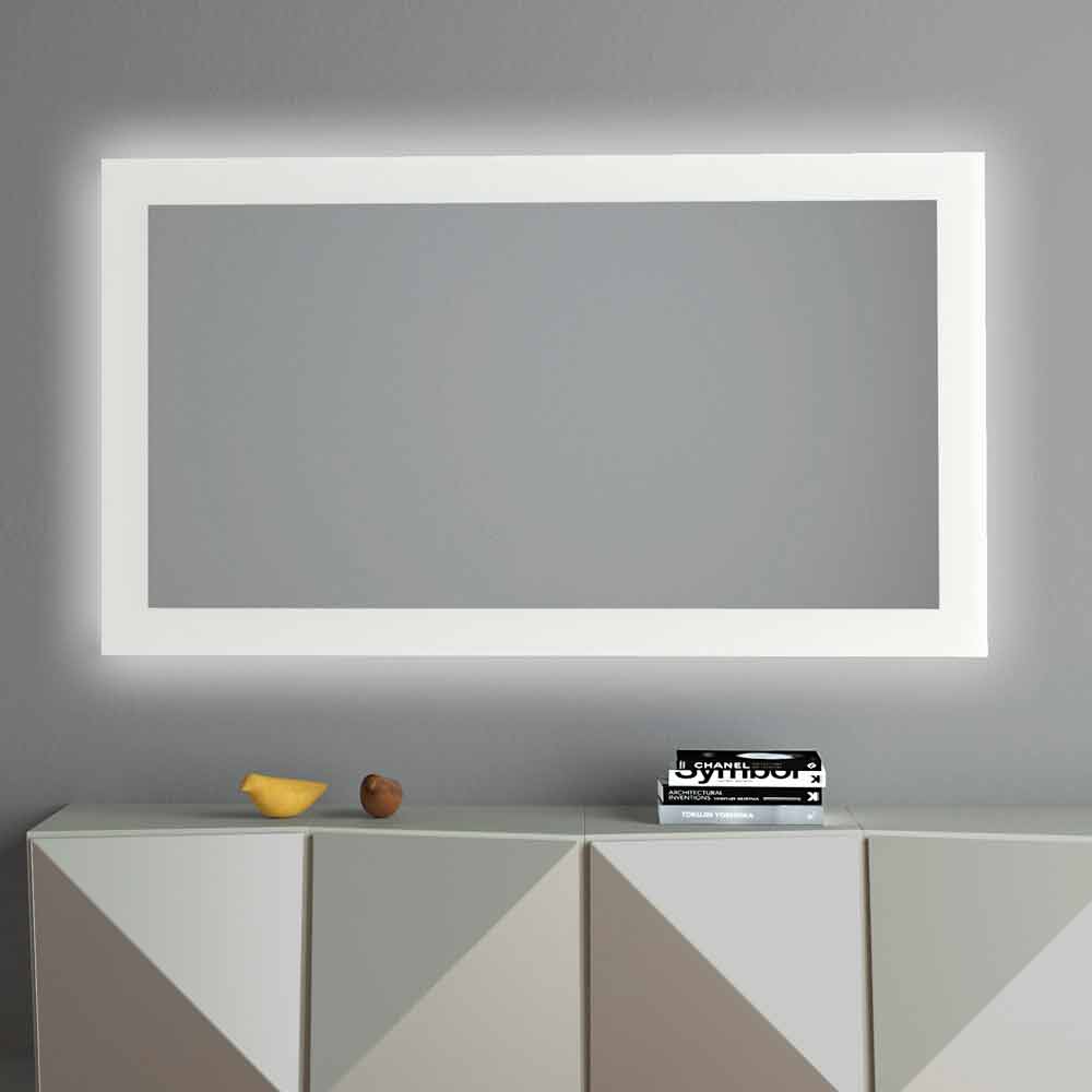 Oglindă de perete cu iluminare din spate dreptunghiulară cu cadru sablat Fabricat în Italia.