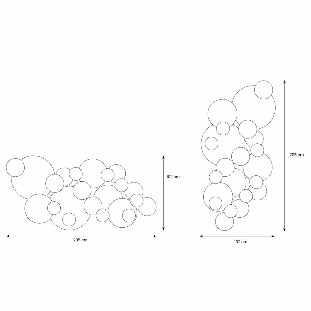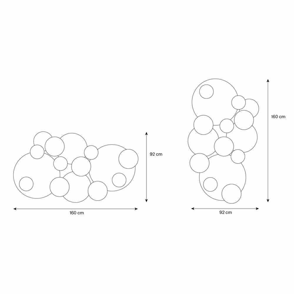 Oglinda de perete este compusă dintr-o serie de elemente de oglindă circulare de diferite dimensiuni și în diferite finisaje : oglindă, afumată, bronz, auriu, roz și gri.
