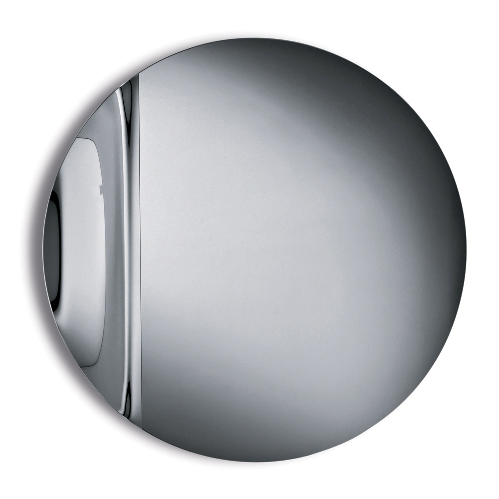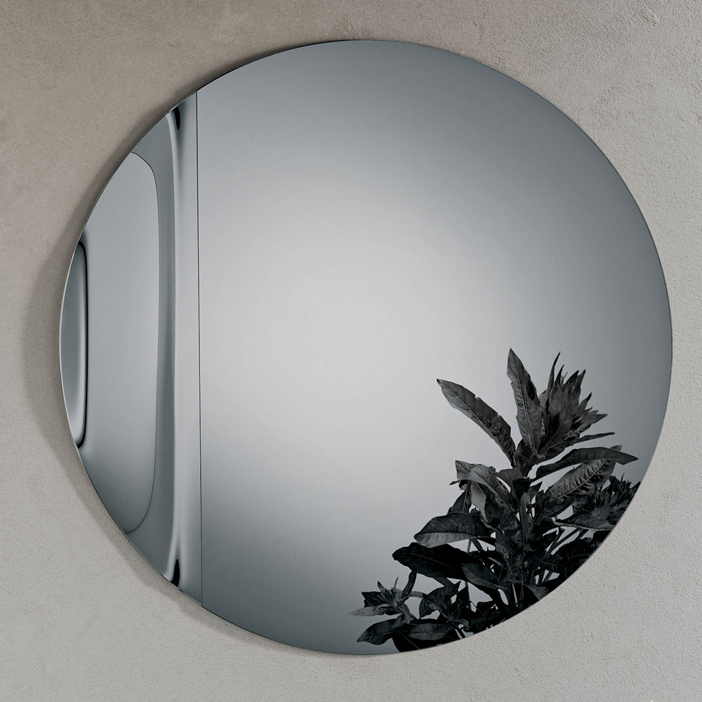 Oglinda are o formă rotundă , realizată din sticlă turnată , înfrumusețată cu o undă laterală care întrerupe elegant simetria perfectă a cercului. Acest detaliu delicat creează un joc rafinat de reflexii și conferă oglinzii un aspect sculptural, dar ușor.