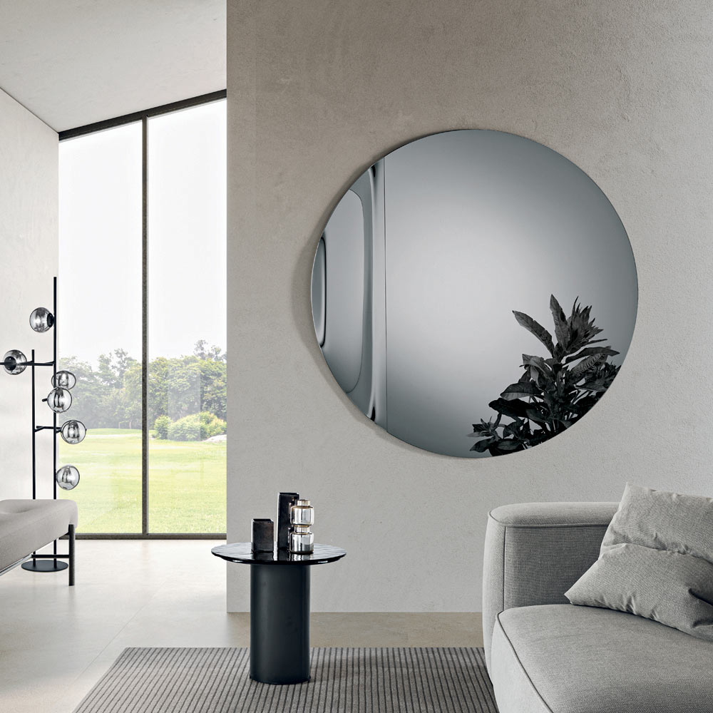 O oglindă de perete elegantă, de design, fabricată în Italia , ideală pentru a înfrumuseța spații precum intrarea , livingul sau dormitorul . Designul său esențial și contemporan combină puritatea unei forme circulare cu un detaliu texturat care conferă mișcare și caracter suprafeței.